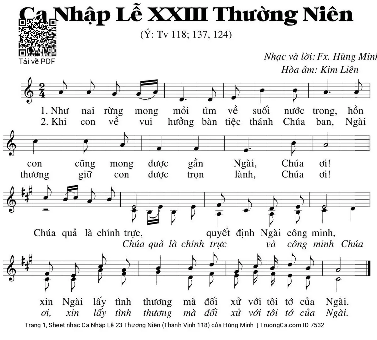 1.Như nai rừng mong mỏi tìm về suối nước trong, hồn con cũng mong được gần Ngài Chúa ơi.