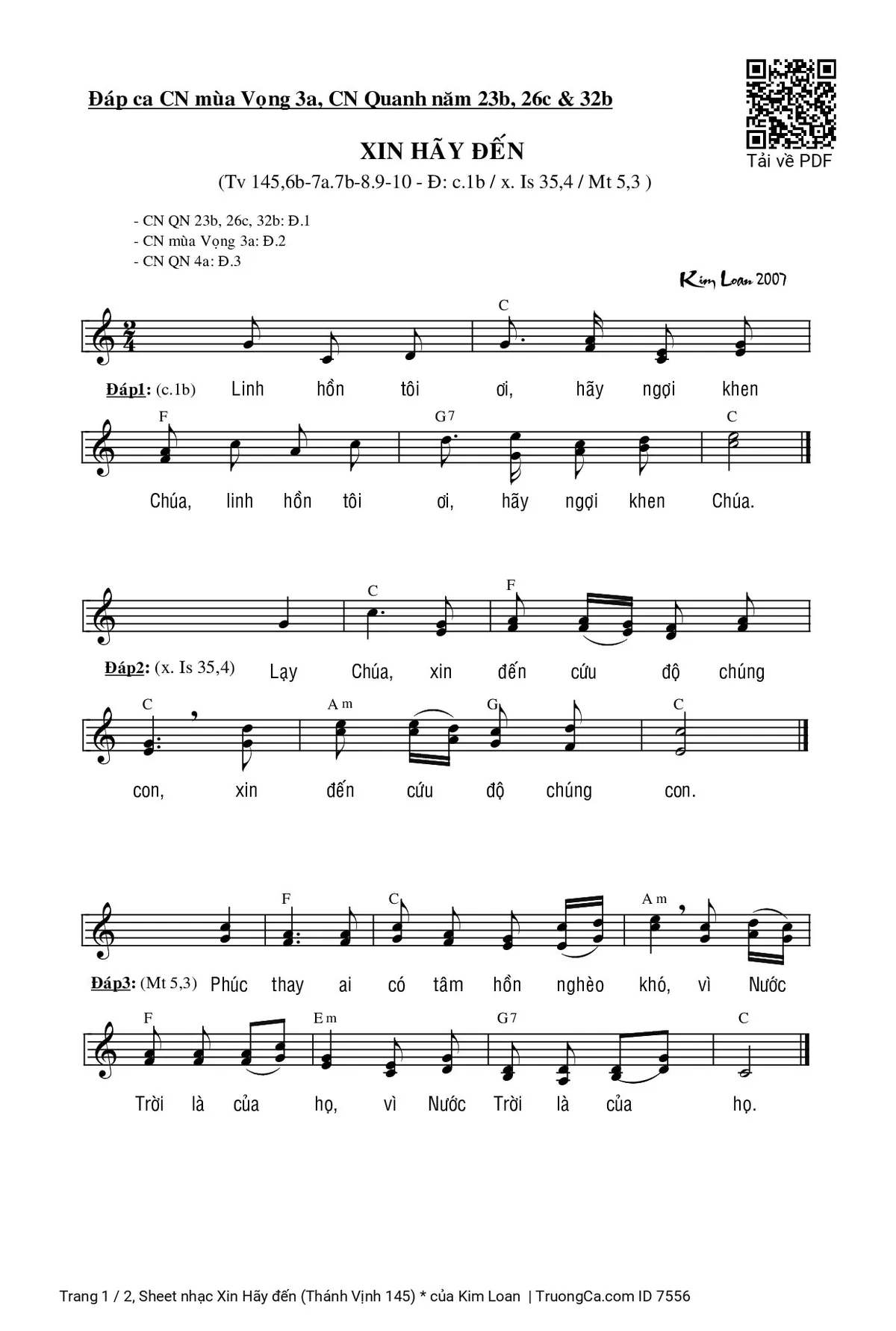 Các sheet PDF tương tự Xin Hãy đến (Thánh Vịnh 145) *: