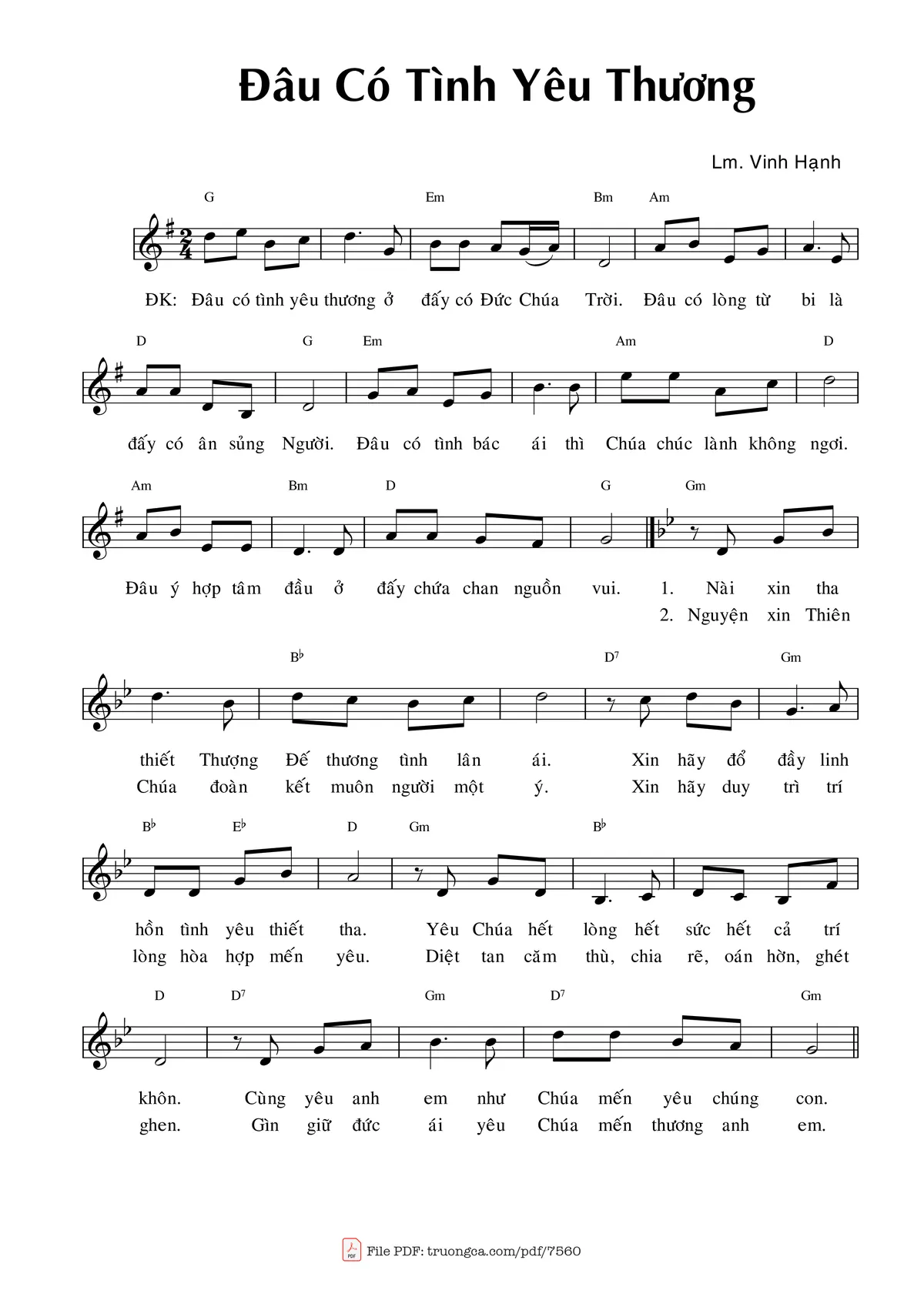 Vinh Hạnh Đâu có tình yêu thương ở đấy có Đức Chúa Trời [PDF] [Sheet] [Lời H.A] [Mp4/Midi]