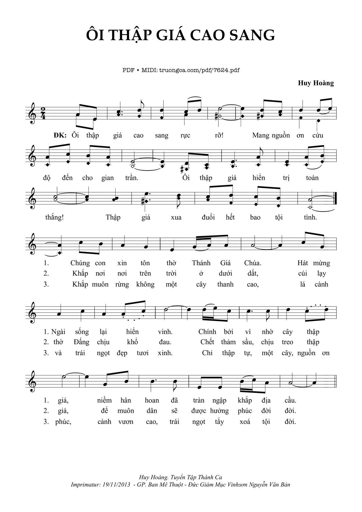 Huy Hoàng Ôi thập giá cao sang rực rỡ Mang nguồn ơn cứu độ đến cho gian trần [PDF] [Sheet] [Lời H.A] [Mp4/Midi]