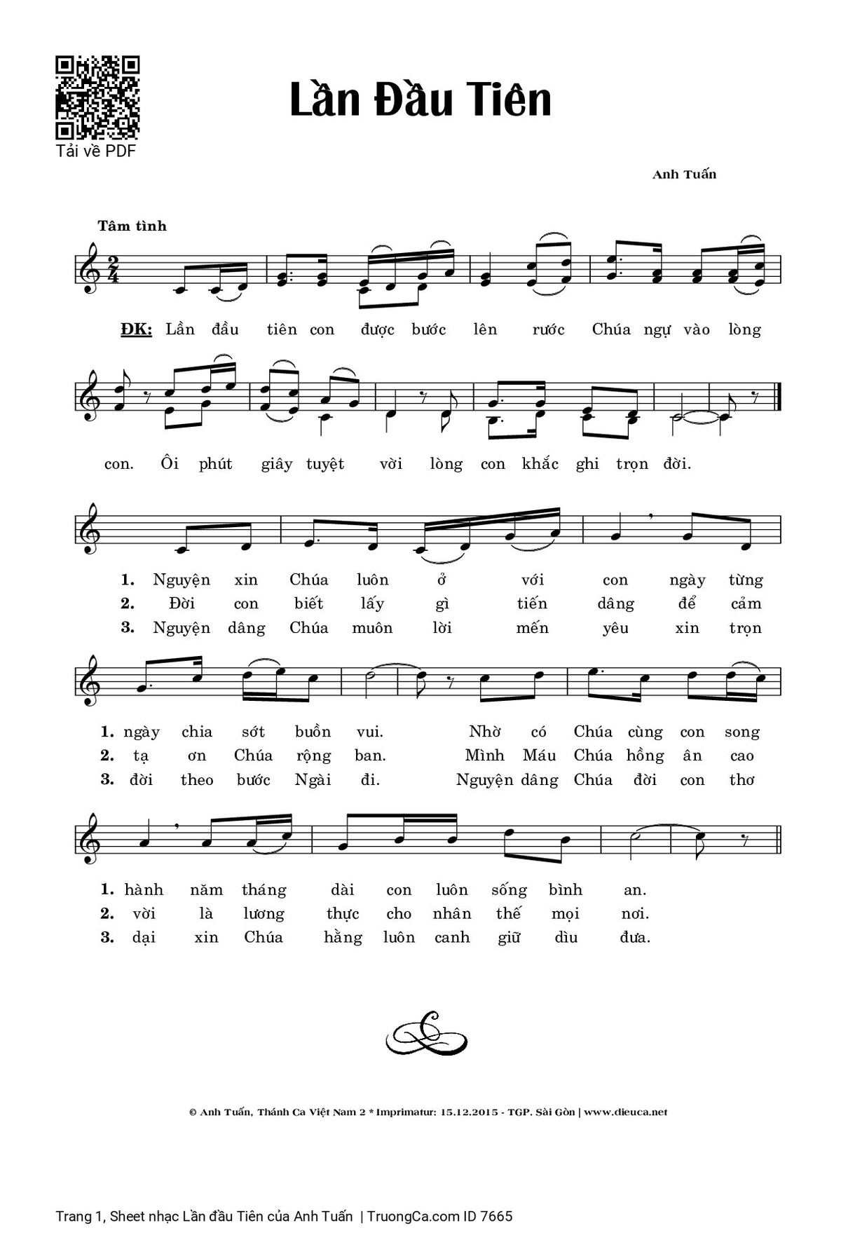 Chọn nút dấu + để tăng tông lên nửa cung, nút dấu - để giảm tông xuống nửa cung. Rê chuột vào hợp âm để xem các thế bấm hợp âm của bài hát Lần đầu Tiên.
