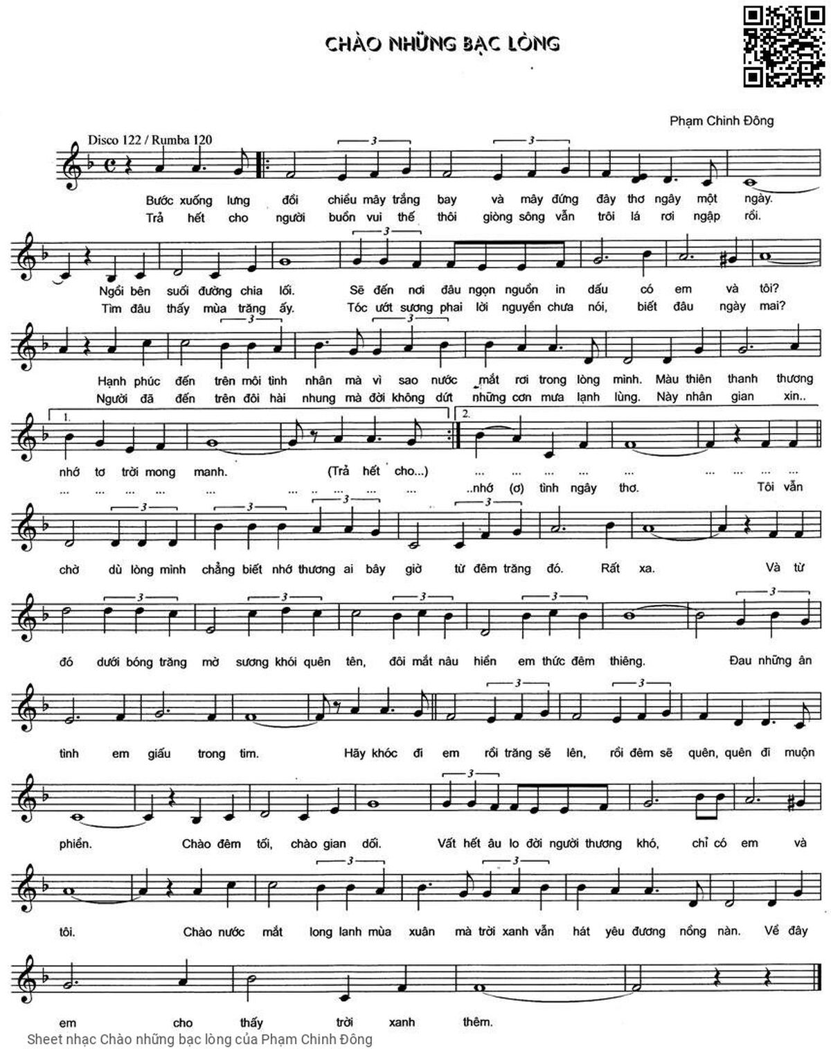 Phần nghe hát Chào những bạc lòng (Phạm Chinh Đông) được nhúng từ Youtube, Musescore hoặc link ngoài và chịu sự kiểm soát bản quyền của bên thứ ba đó, vì vậy có thể bị xóa hoặc chèn quảng cáo bất kỳ lúc nào. Nếu bạn không nghe - xem được ca sĩ hát tức là đã bị Youtube hoặc Musescore kiểm soát.