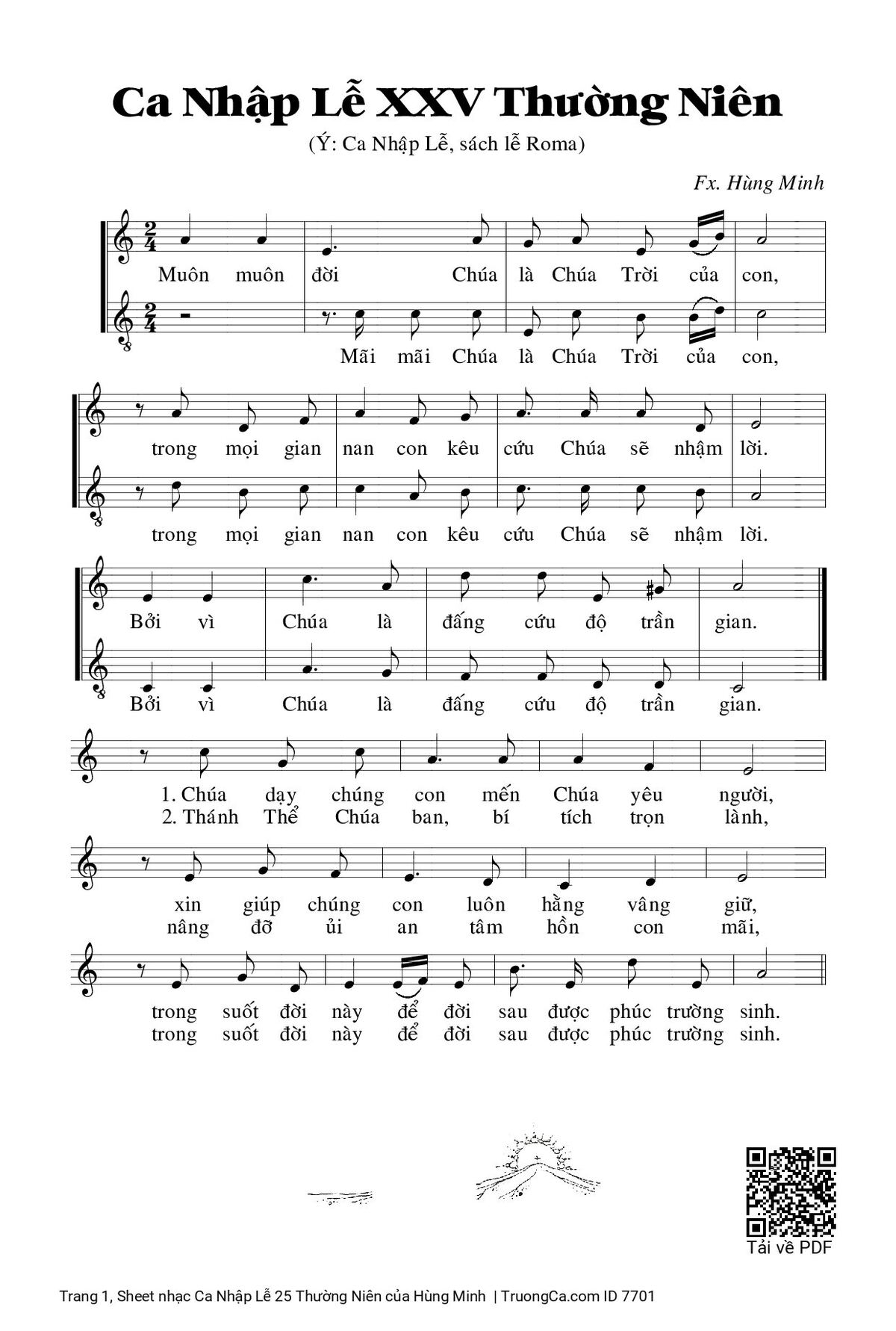Các sheet PDF cùng tên Ca Nhập Lễ 25 Thường Niên: