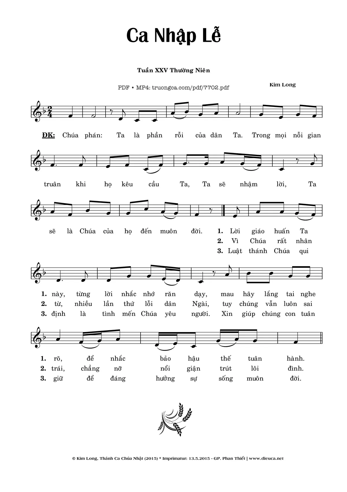 Các sheet PDF cùng tên Ca Nhập Lễ 25 Thường Niên: