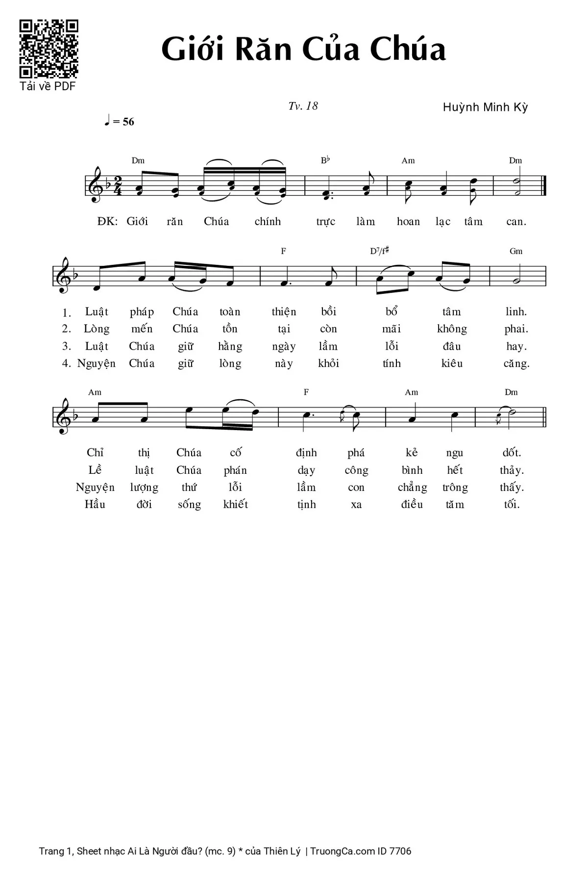 Chọn nút dấu + để tăng tông lên nửa cung, nút dấu - để giảm tông xuống nửa cung. Rê chuột vào hợp âm để xem các thế bấm hợp âm của bài hát Ai Là Người đầu? (mc. 9) *.