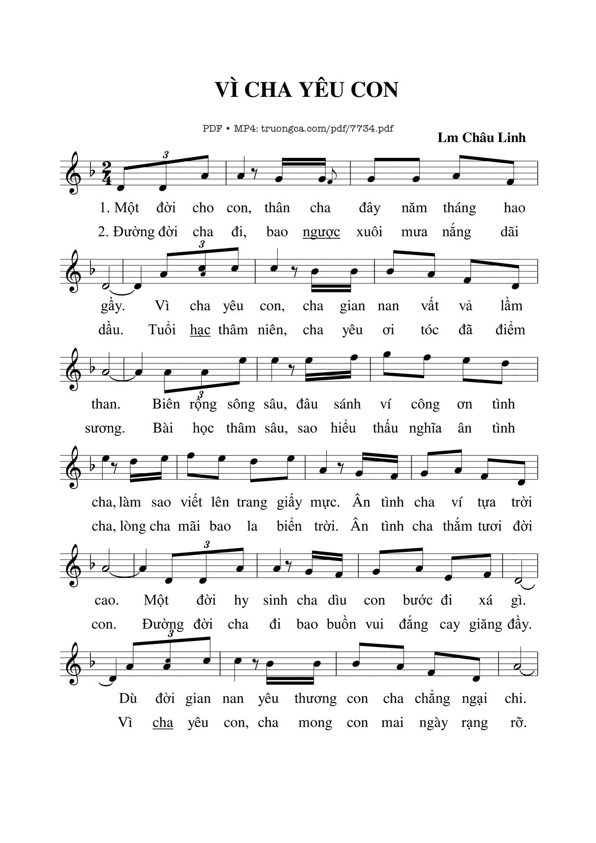 Châu Linh Một đời cho con thân cha đây năm tháng hào gầy [PDF] [Sheet] [Lời H.A] [Mp4/Midi]