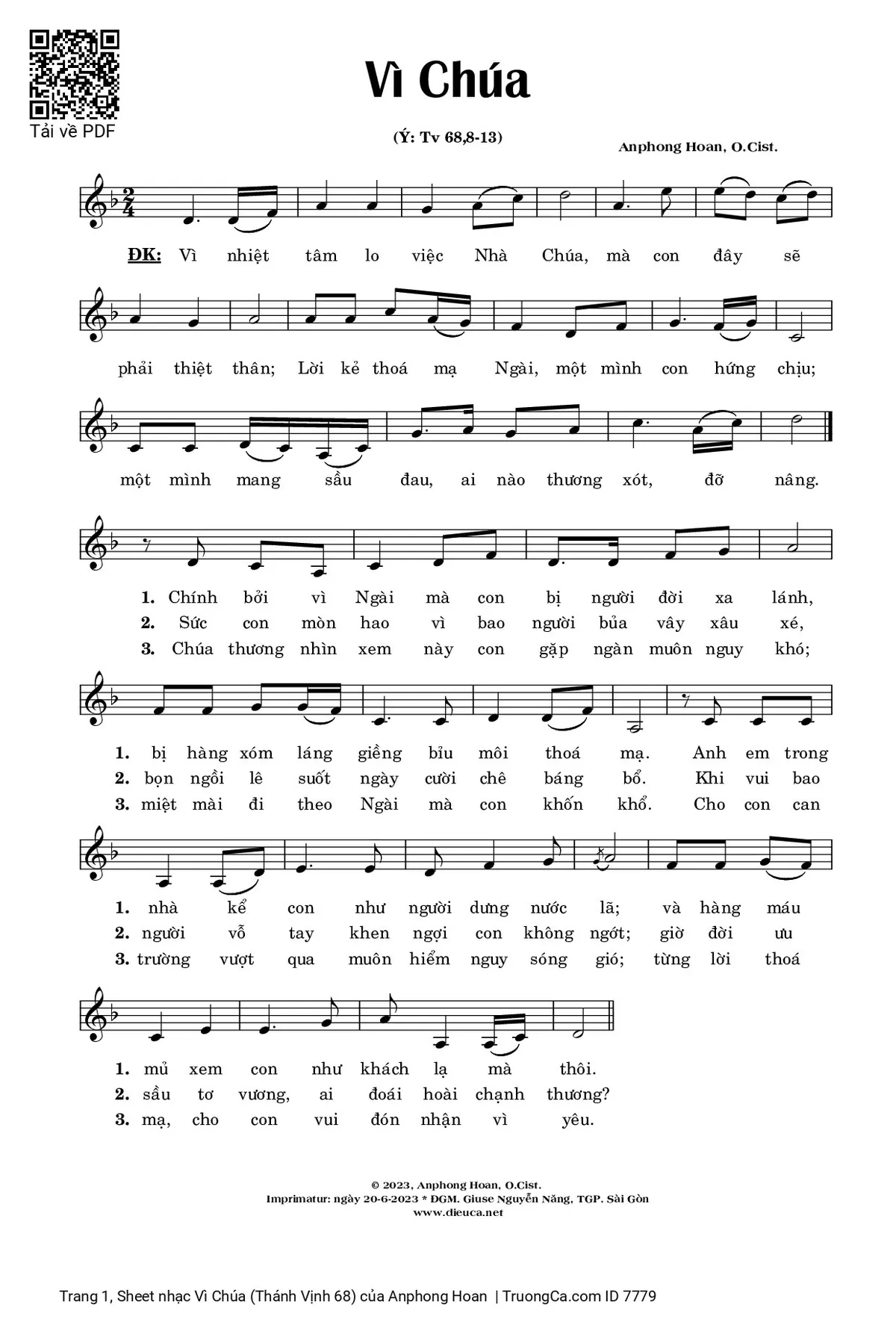 Các sheet PDF tương tự Vì Chúa (Thánh Vịnh 68):