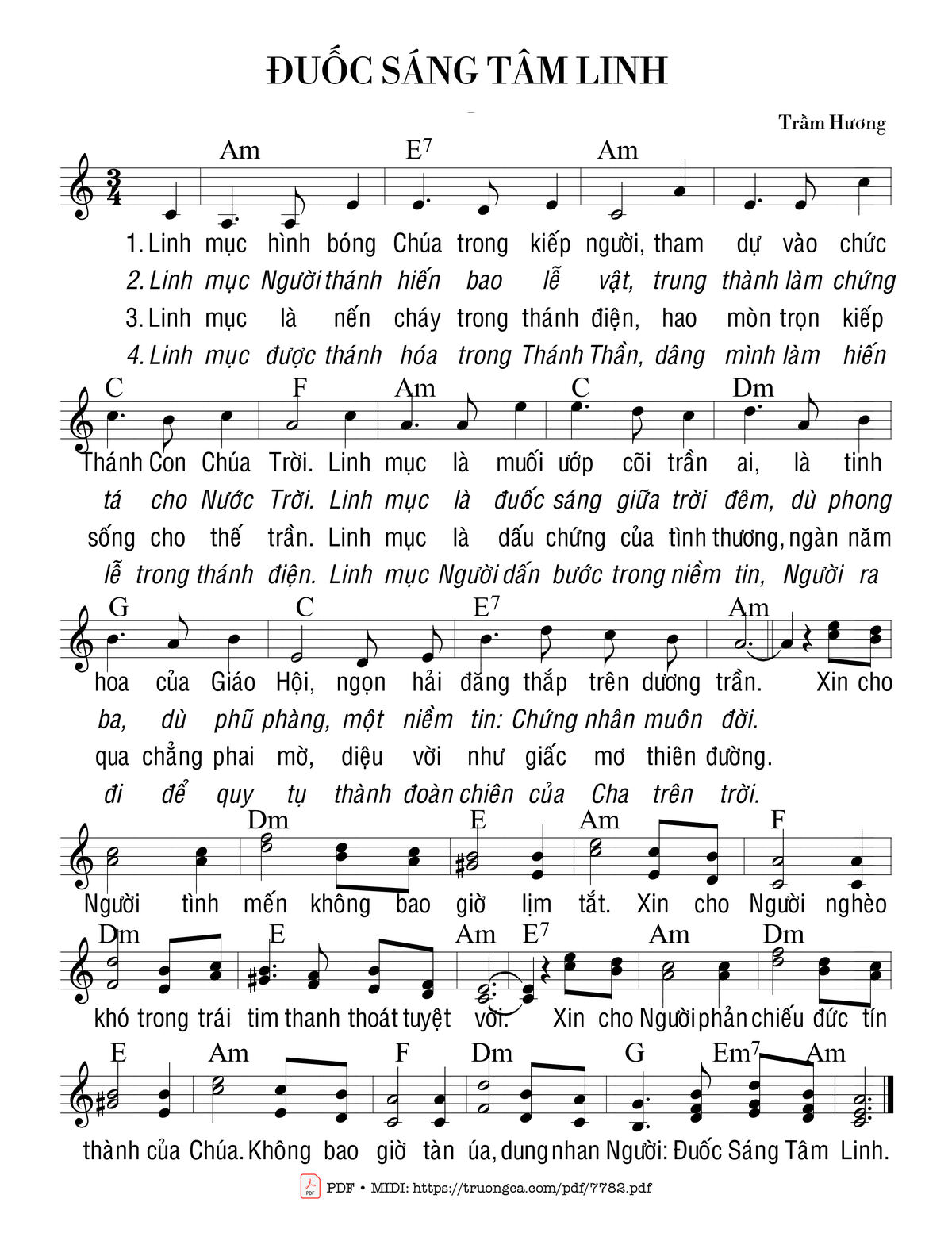 Trầm Hương Linh mục là chính Chúa trong kiếp người [PDF] [Sheet] [Lời H.A] [Mp4/Midi]