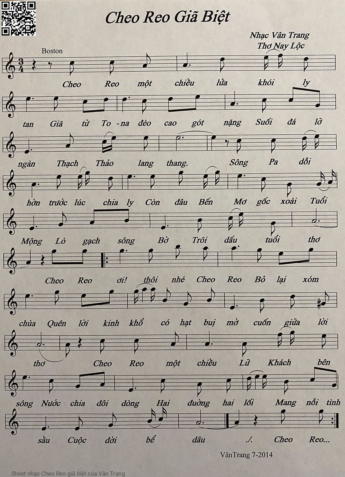 Vân Trang Cheo Reo một chiều lửa khói ly tan Giã từ Tona đèo cao gót nặng [PDF] [Sheet] [Lời H.A] [Mp4/Midi]