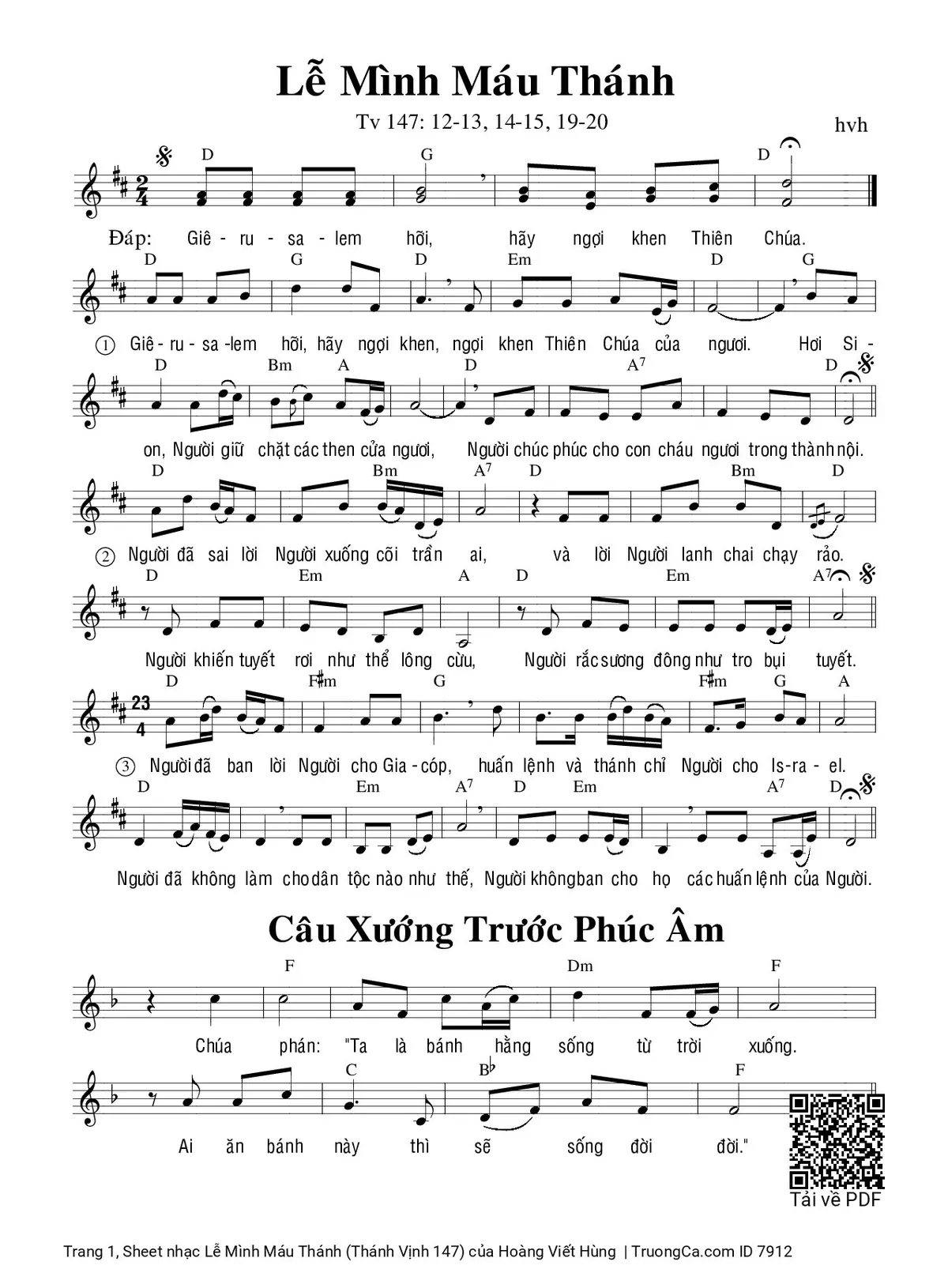 Các sheet PDF tương tự Lễ Mình Máu Thánh (Thánh Vịnh 147):