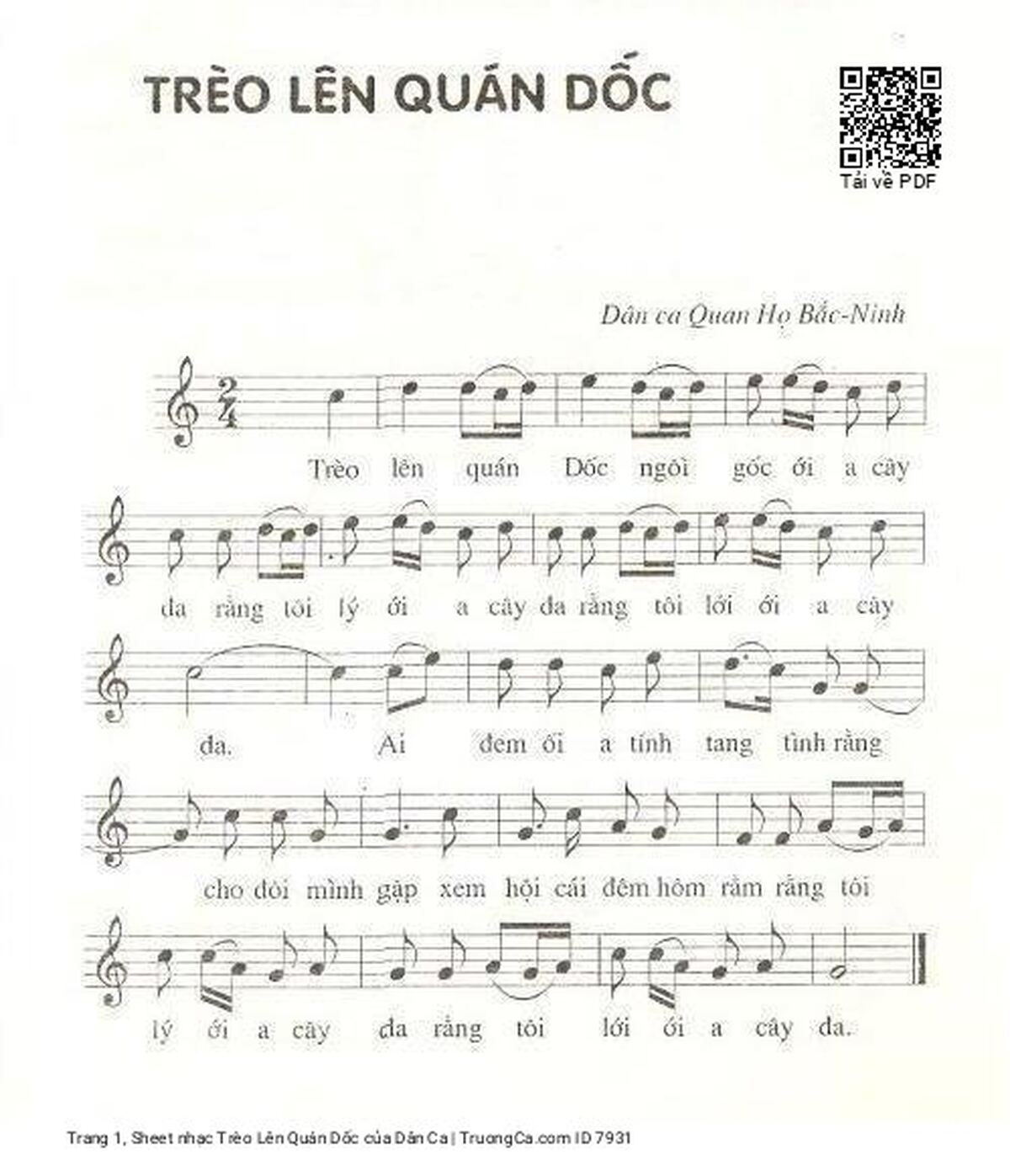 Trang 1 của Sheet nhạc PDF bài hát Trèo Lên Quán Dốc - Dân Ca