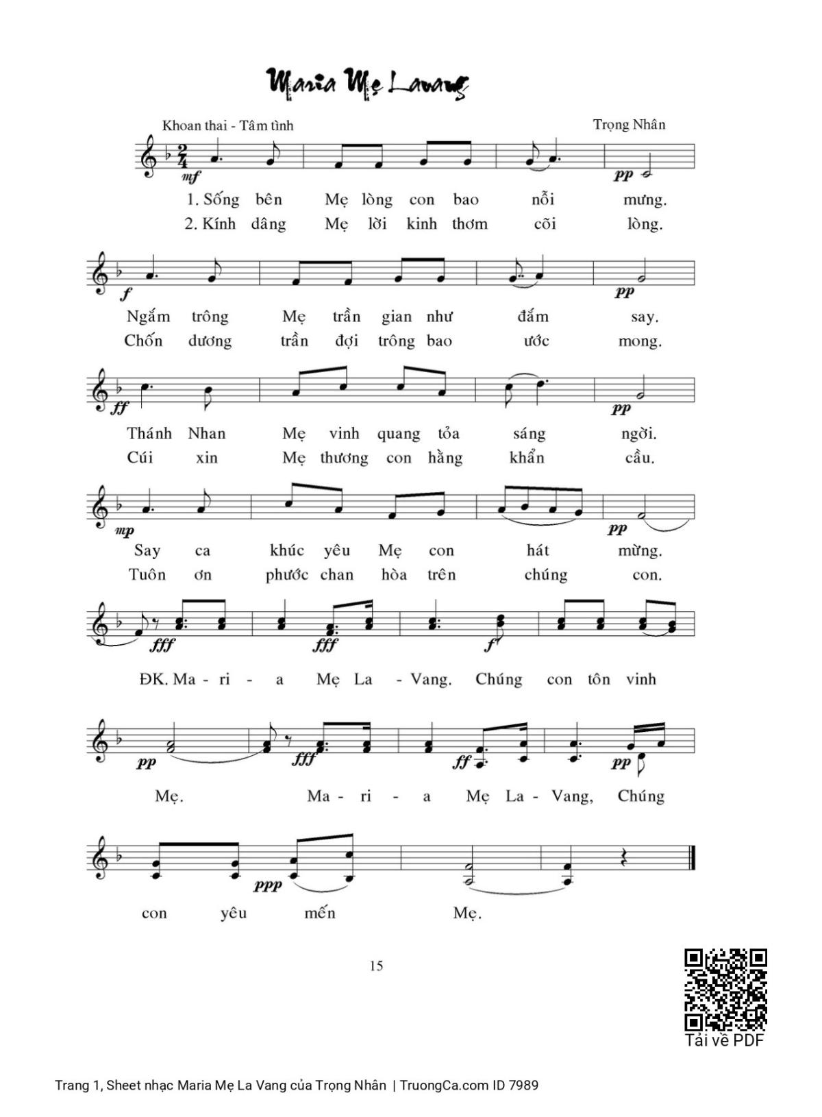 Các sheet PDF tương tự Maria Mẹ La Vang: