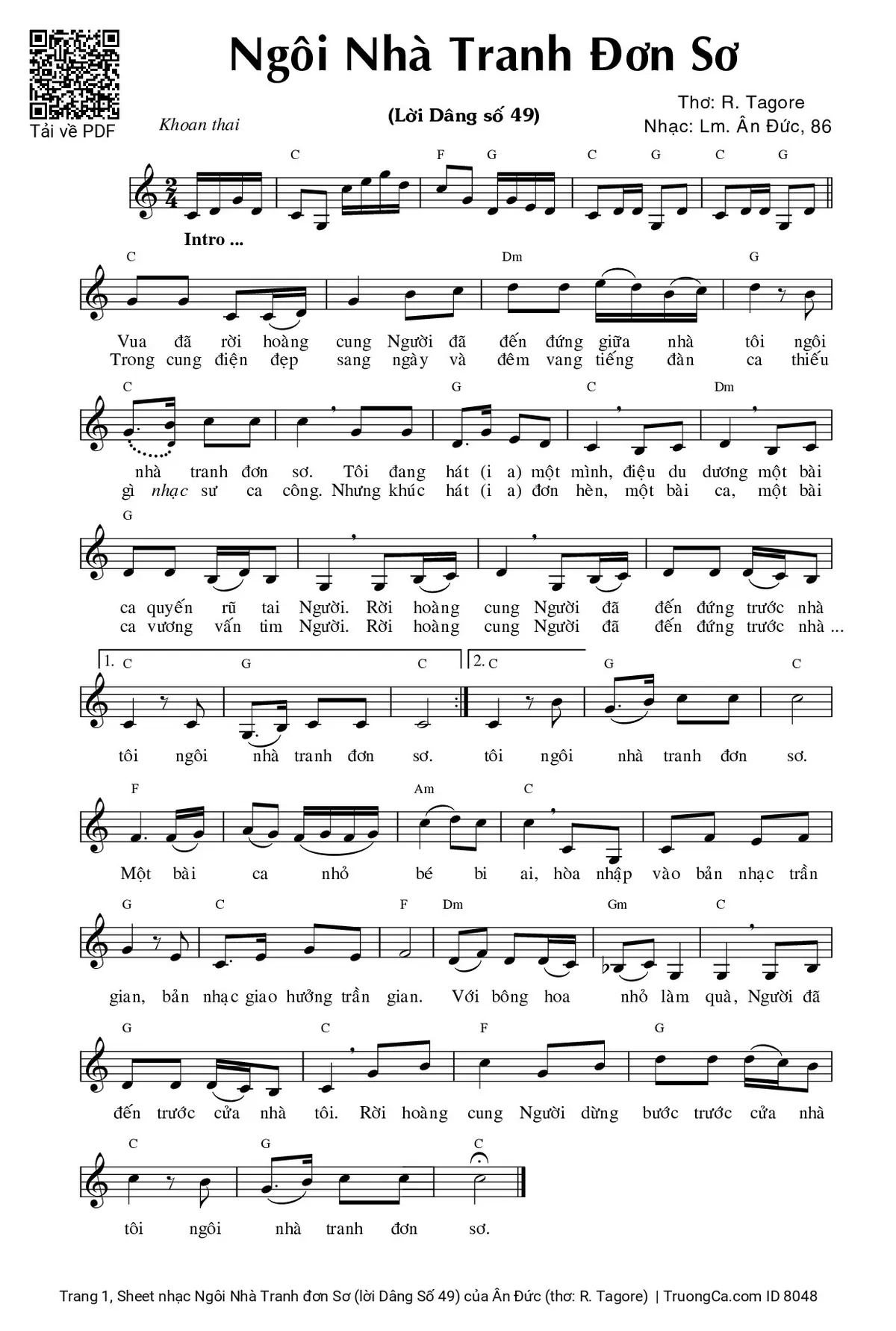 Các sheet PDF tương tự Ngôi Nhà Tranh đơn Sơ (lời Dâng Số 49):