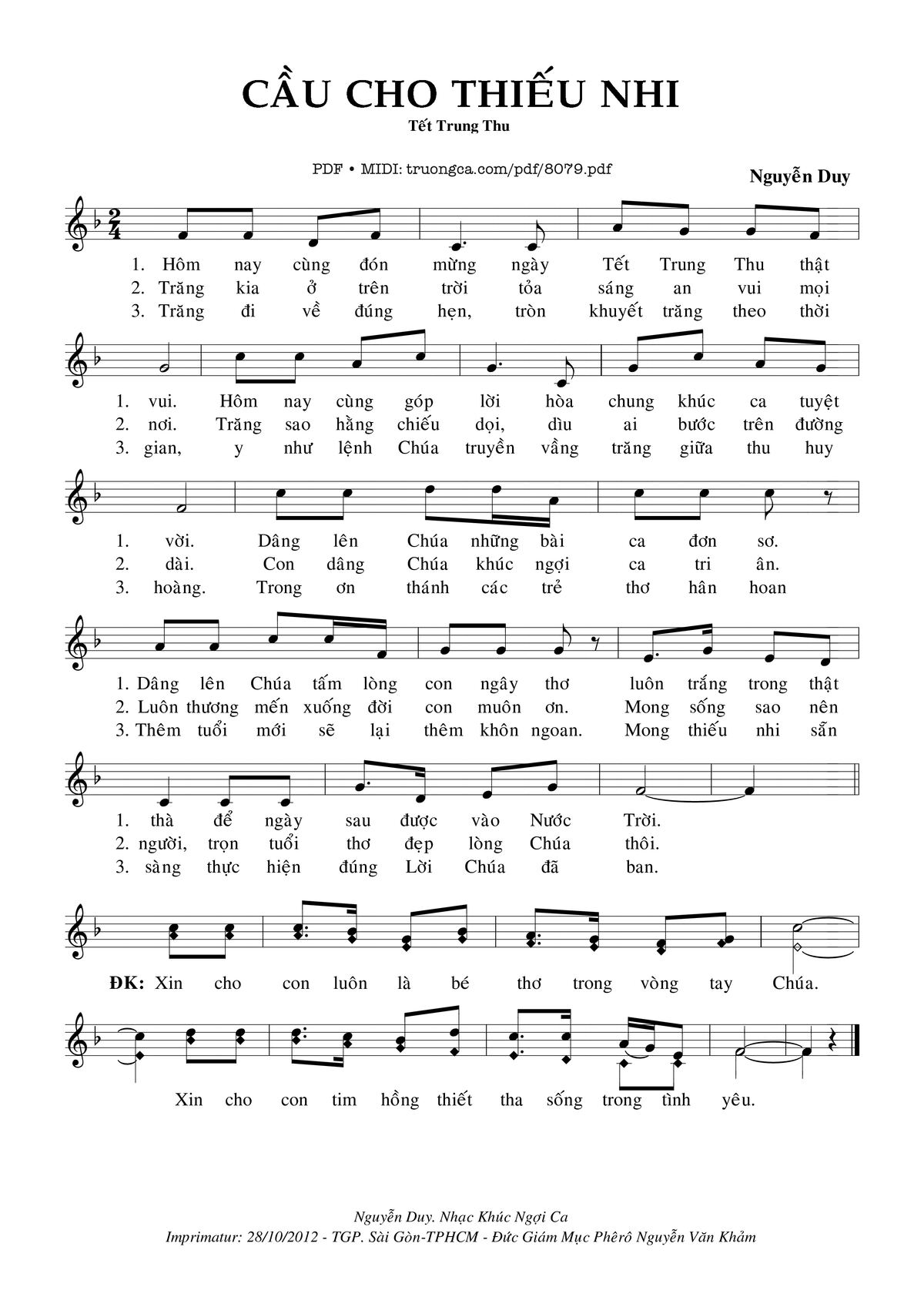 Các sheet PDF tương tự Cầu Cho Thiếu Nhi: