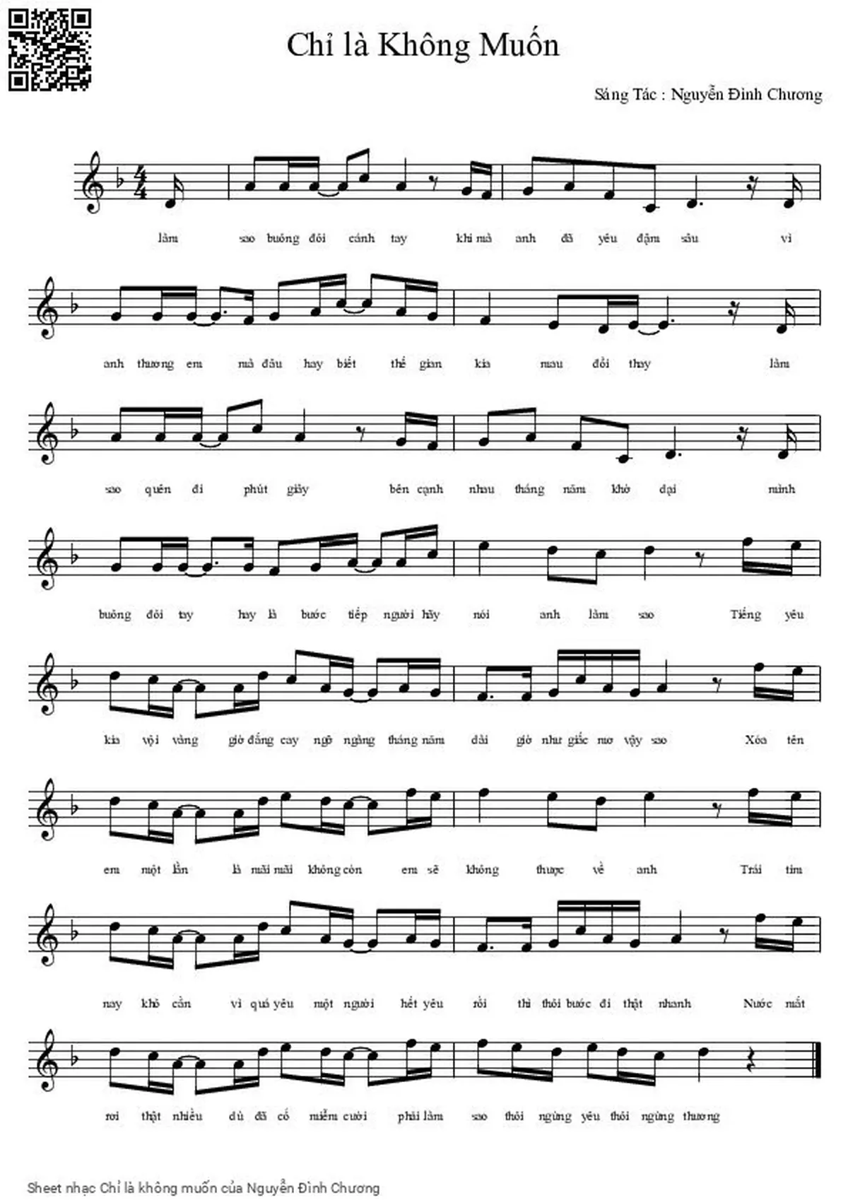 Nguyễn Đình Chương Làm sao buông đôi cánh tay Khi mà anh đã yêu đậm sâu [PDF] [Sheet] [Lời H.A] [Mp4/Midi]
