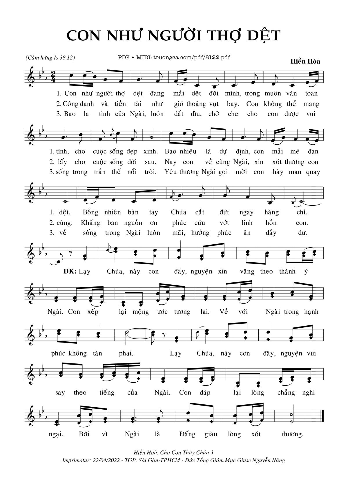 Hiền Hòa Con như người thợ dệt đang mải dệt đời mình [PDF] [Sheet] [Lời H.A] [Mp4/Midi]