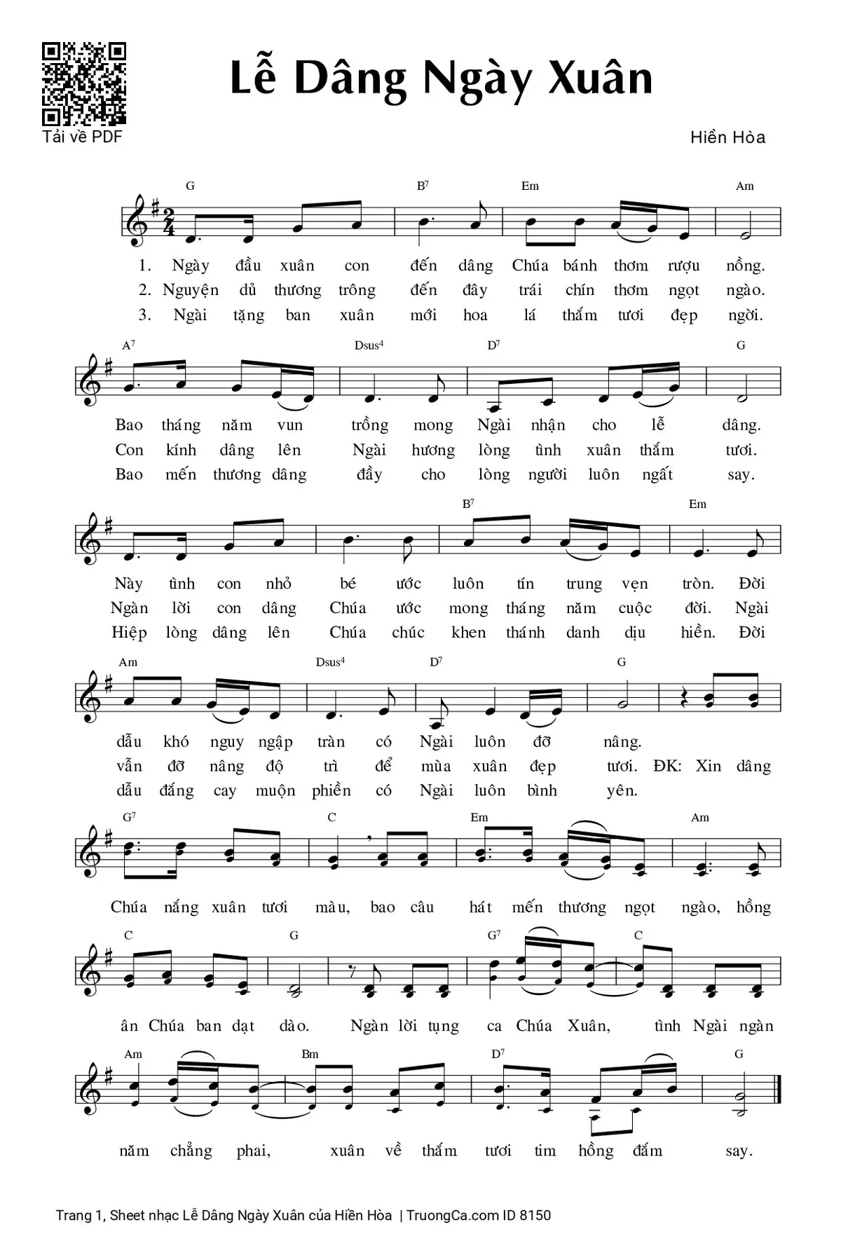 3. Ngài tặng ban xuân mới hoa lá thắm tươi đẹp ngời. Bao mến thương dâng đầy cho lòng người luôn ngất say. Hiệp lòng dâng lên Chúa chúc khen thánh danh dịu hiền. Đời dẫu đắng cay muộn phiền có Ngài luôn bình yên.