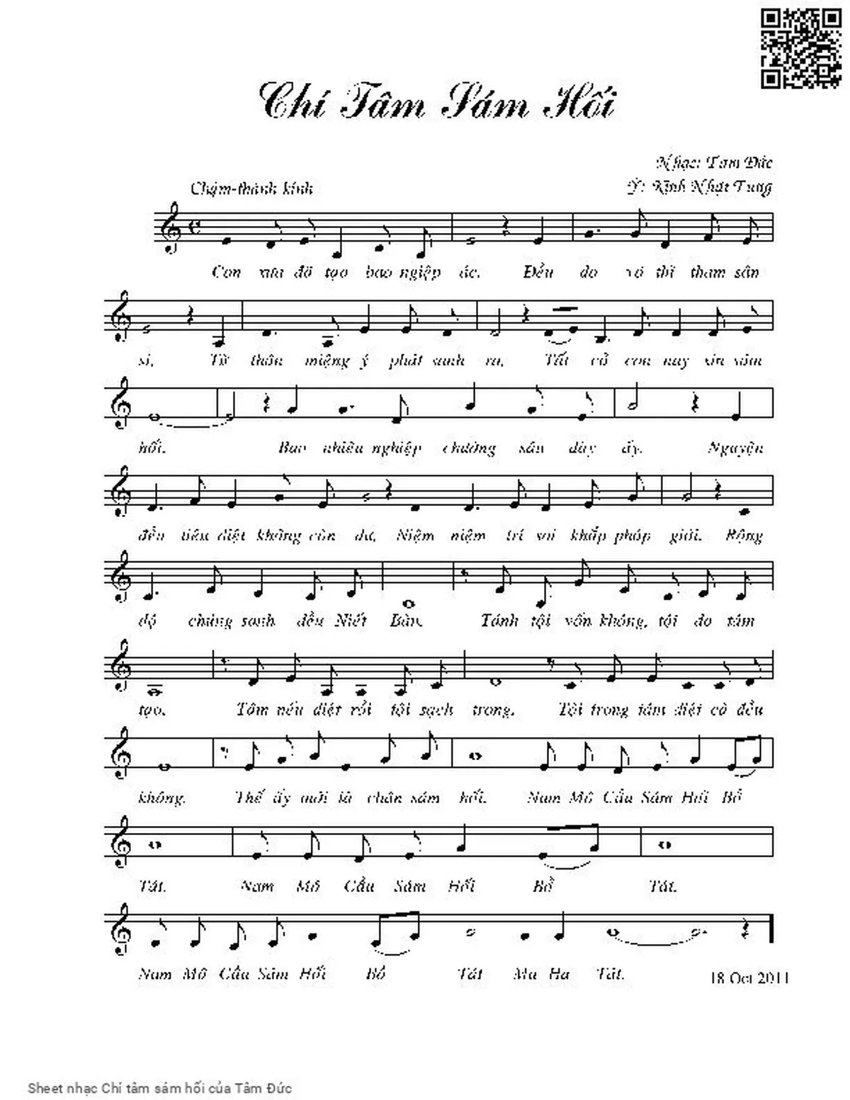 Phần nghe hát Chí tâm sám hối (Tâm Đức) được nhúng từ Youtube, Musescore hoặc link ngoài và chịu sự kiểm soát bản quyền của bên thứ ba đó, vì vậy có thể bị xóa hoặc chèn quảng cáo bất kỳ lúc nào. Nếu bạn không nghe - xem được ca sĩ hát tức là đã bị Youtube hoặc Musescore kiểm soát.