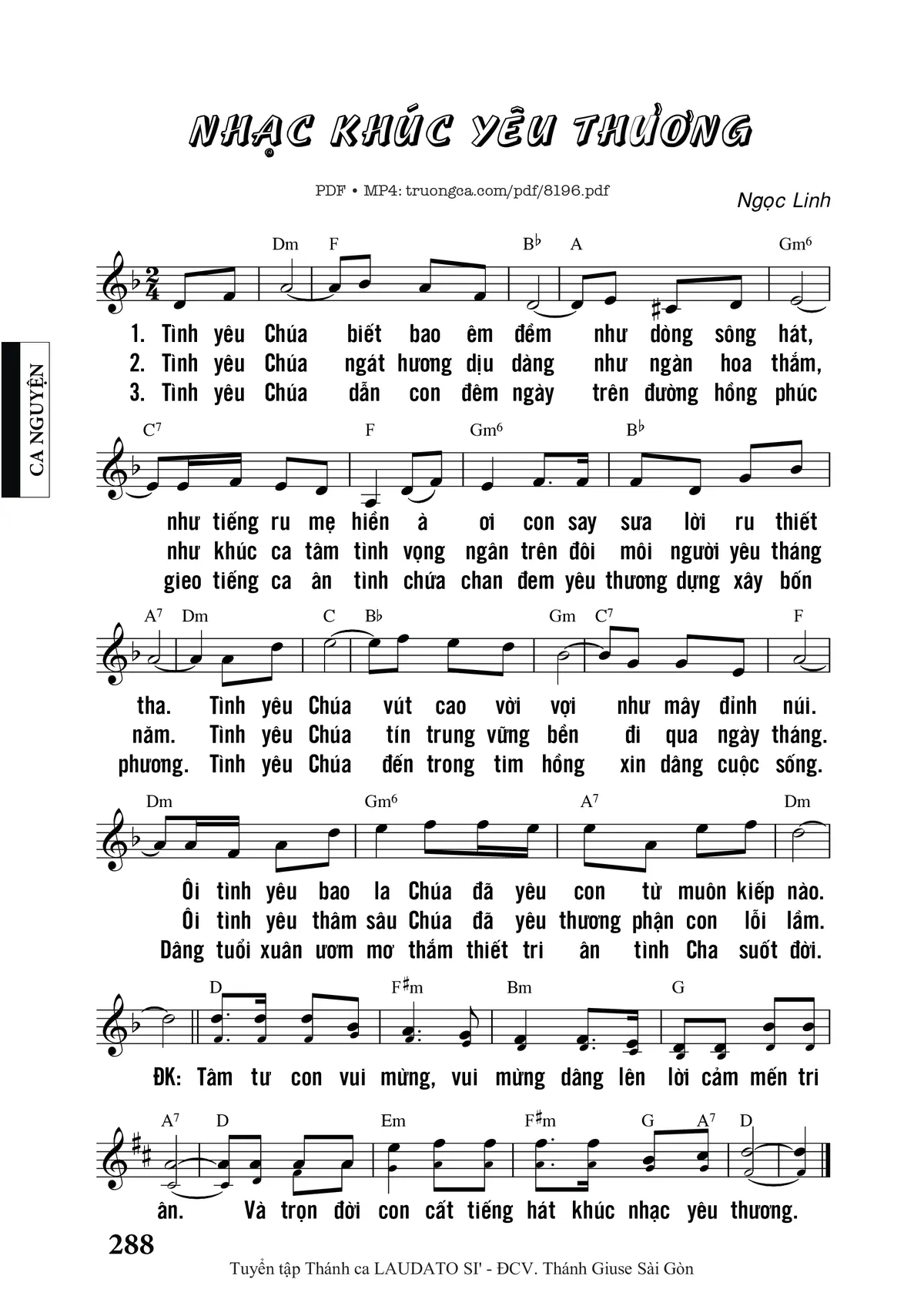 Ngọc Linh Tình yêu Chúa biết bao êm đềm như dòng sông hát [PDF] [Sheet] [Lời H.A] [Mp4/Midi]