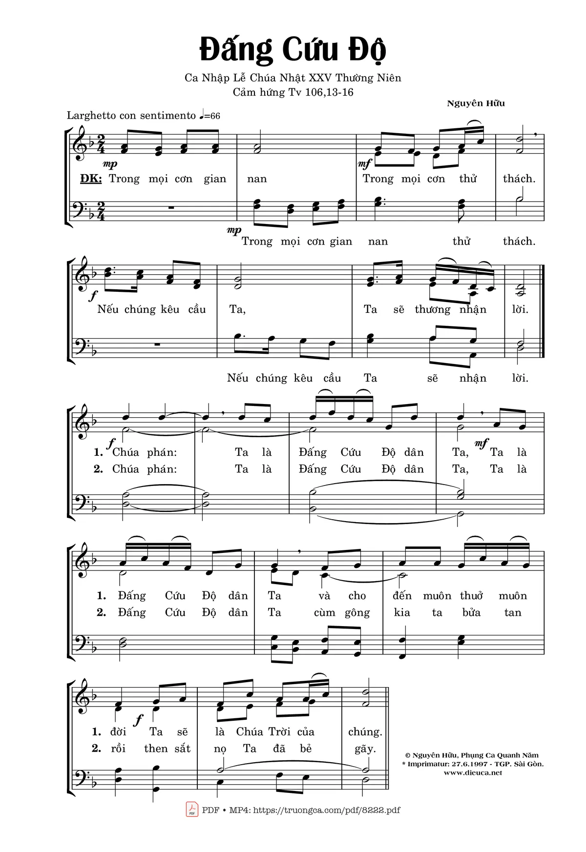 1. Chúa phán: Ta là Đấng Cứu Độ dân Ta, Ta là Đấng Cứu Độ dân Ta và cho đến muôn thuở muôn đời Ta sẽ là Chúa Trời của chúng.