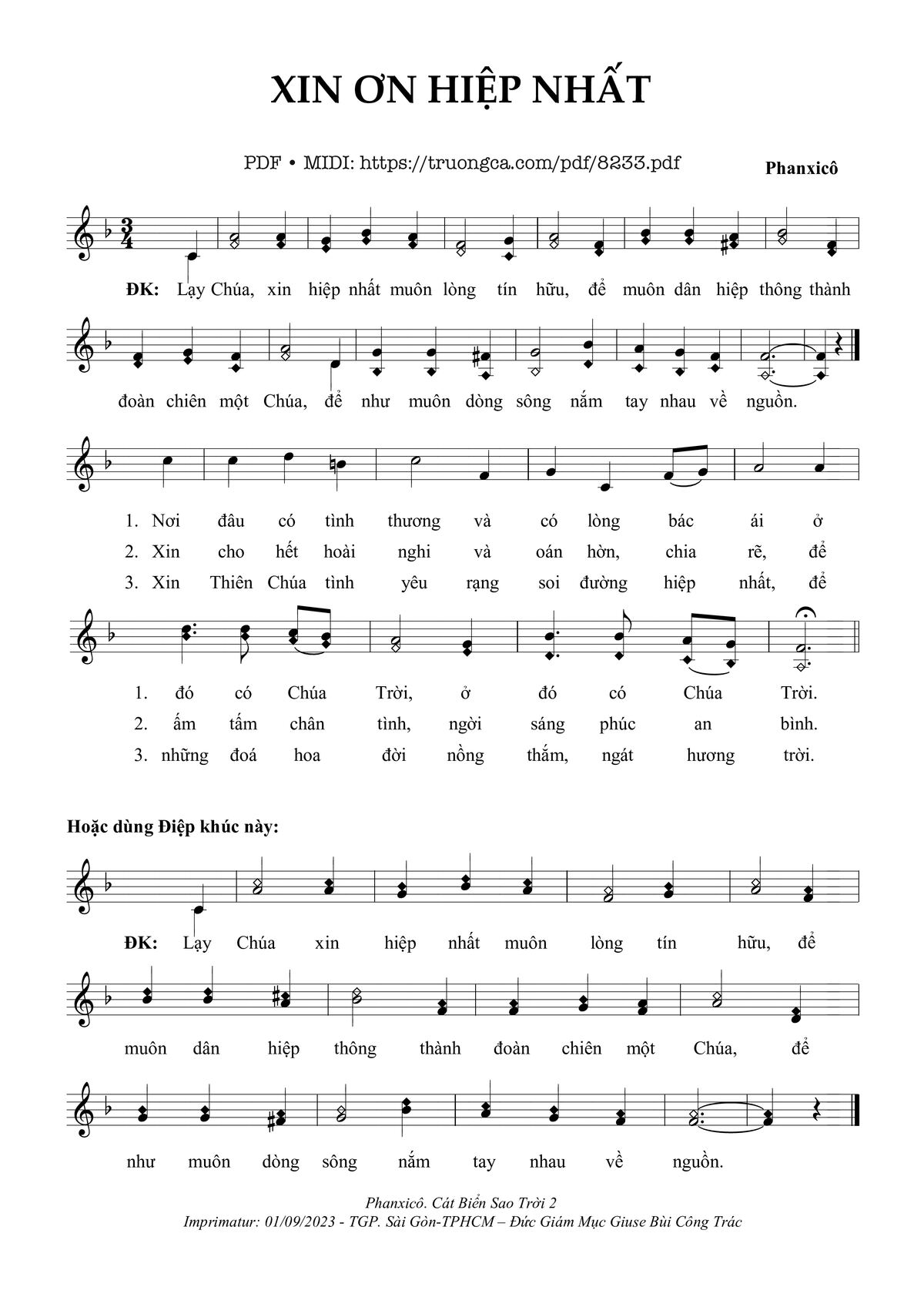 Các sheet PDF tương tự Xin ơn Hiệp Nhất: