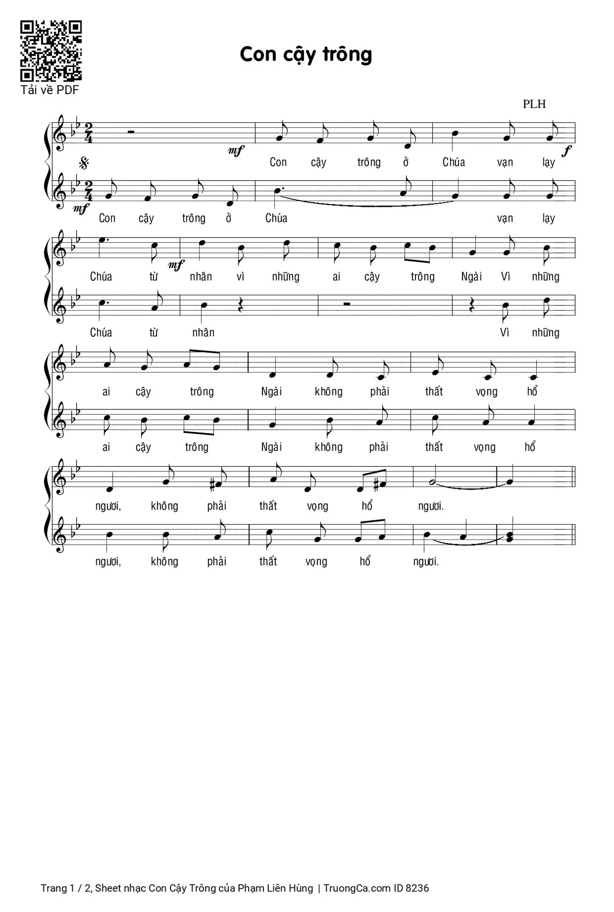 Chọn nút dấu + để tăng tông lên nửa cung, nút dấu - để giảm tông xuống nửa cung. Rê chuột vào hợp âm để xem các thế bấm hợp âm của bài hát Con Cậy Trông.