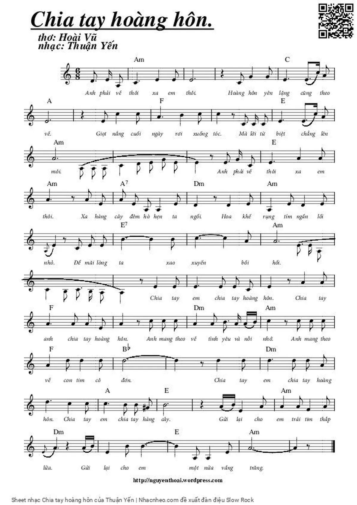 Thuận Yến Anh phải về thôi xa em thôi Hoàng hôn yên lặng cũng theo về [PDF] [Sheet] [Lời H.A] [Mp4/Midi]