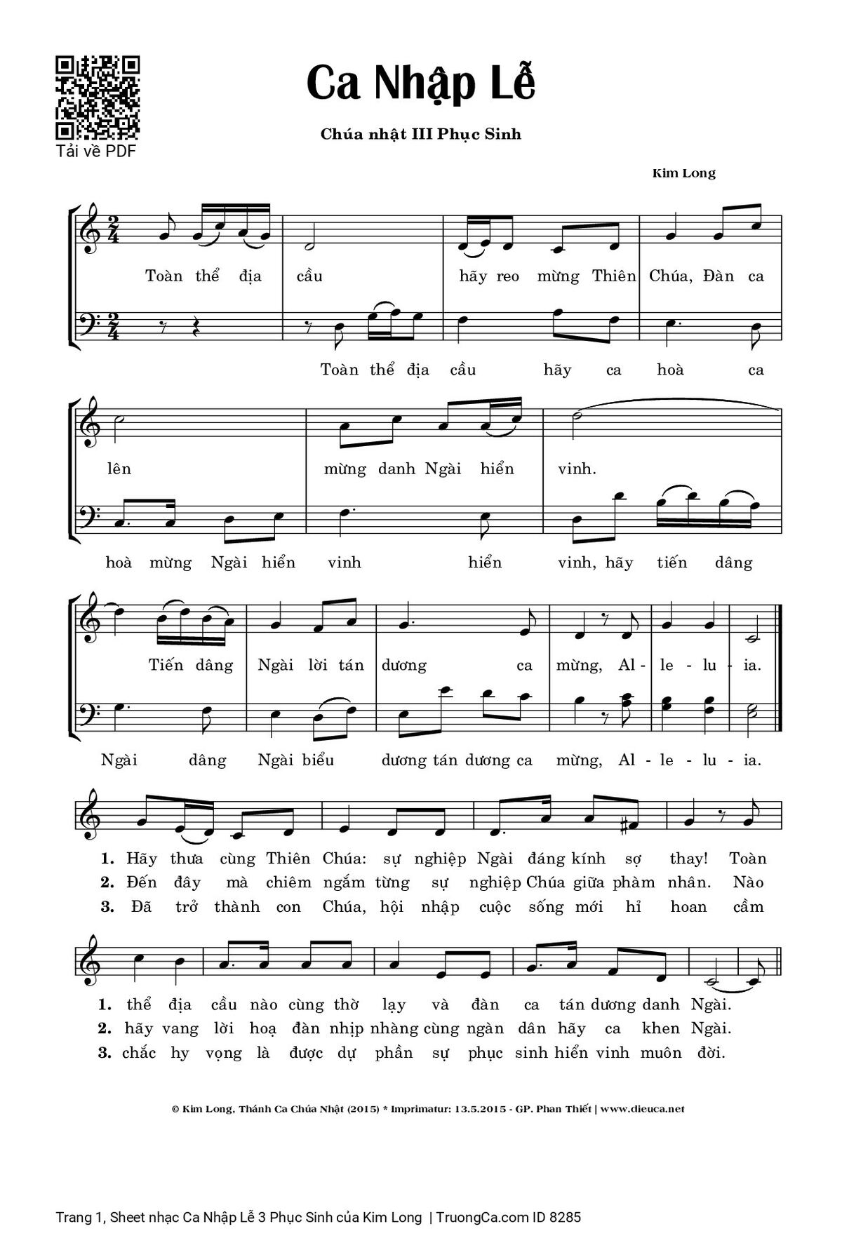 Các sheet PDF tương tự Ca Nhập Lễ 3 Phục Sinh: