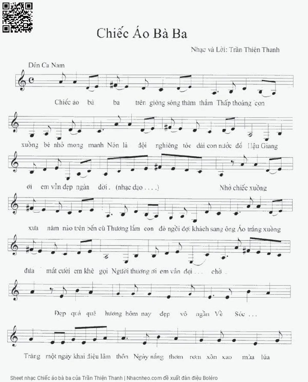 Trần Thiện Thanh Chiếc áo bà ba trên dòng sông thăm thẳm [PDF] [Sheet] [Lời H.A] [Mp4/Midi]
