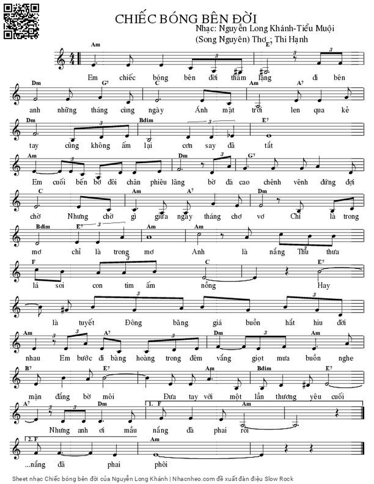 Nguyễn Long Khánh Em chiếc bóng bên đời thầm lặng Đi bên anh những tháng cùng ngày [PDF] [Sheet] [Lời H.A] [Mp4/Midi]