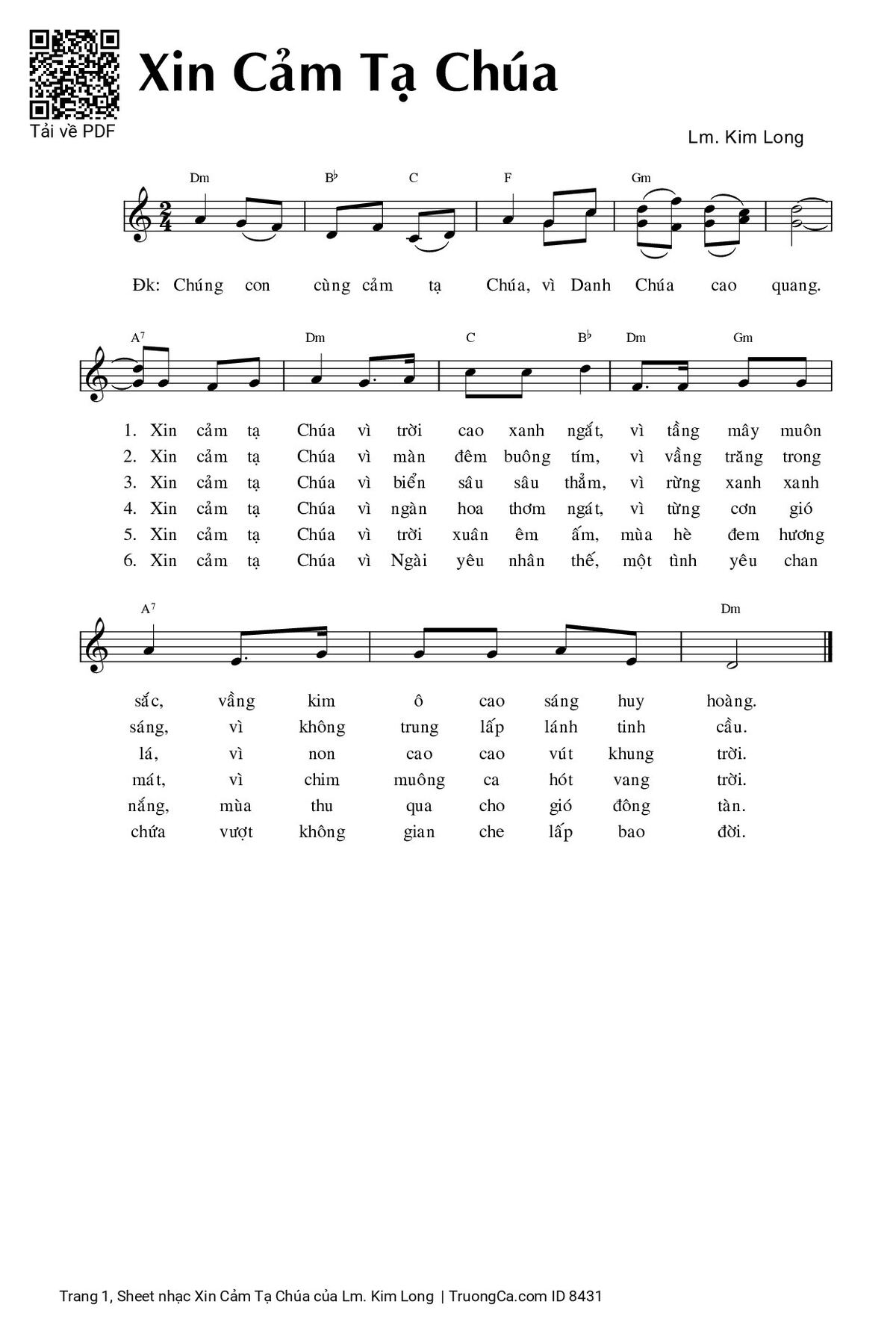 Các sheet PDF cùng tên Xin Cảm Tạ Chúa: