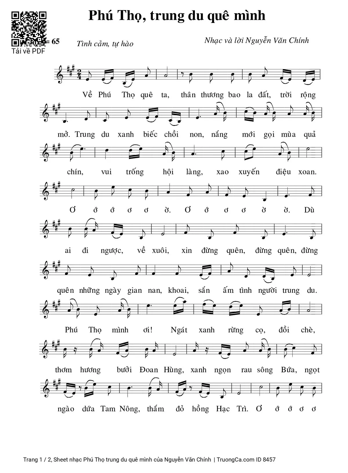 Nguyễn Văn Chính Về Phú Thọ quê ta thân thương bao la đất trời rộng mở [PDF] [Sheet] [Lời H.A] [Mp4/Midi]
