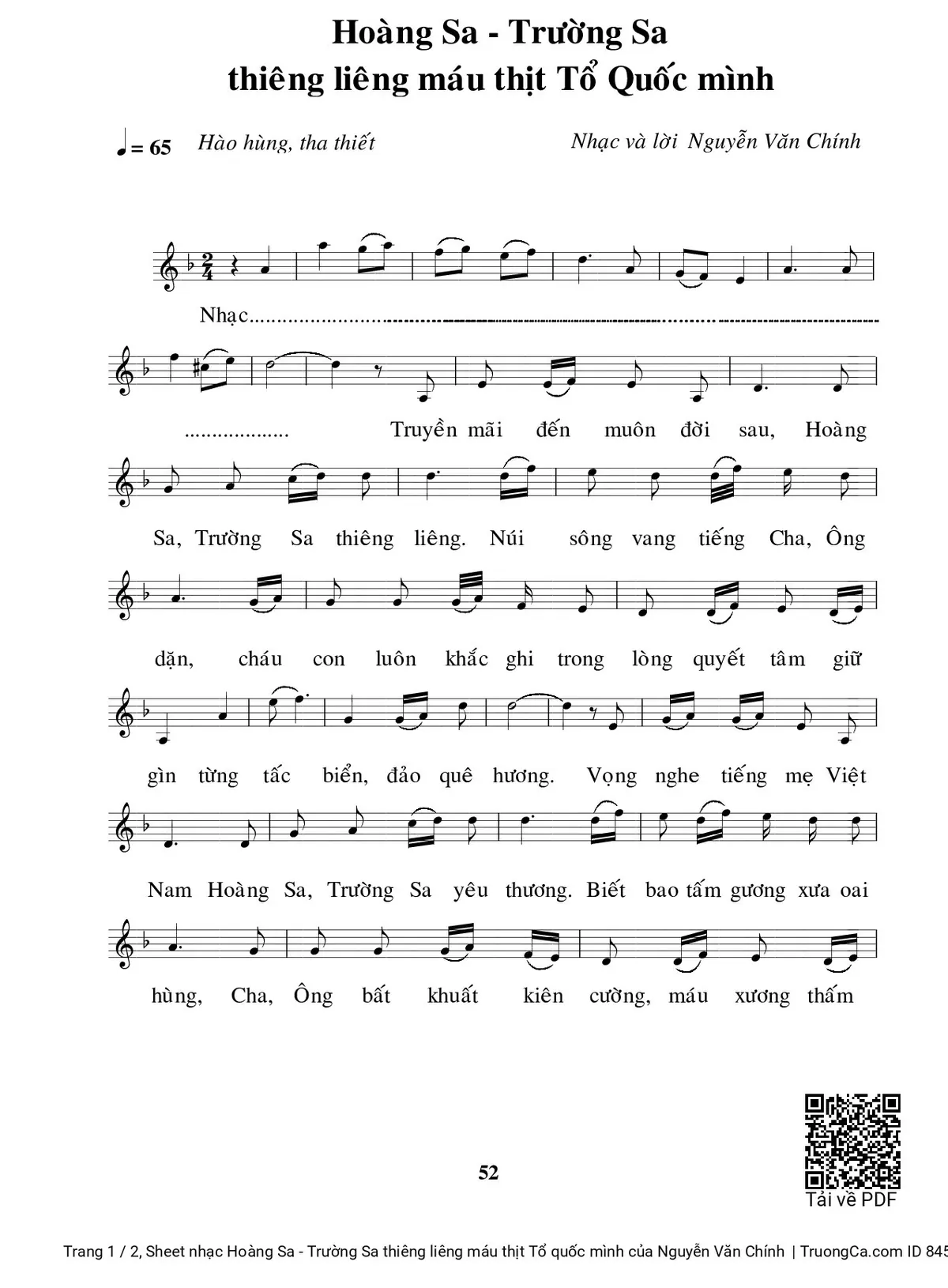 Nguyễn Văn Chính Truyền mãi đến muôn đời sau Hoàng Sa Trường Sa thiêng liêng [PDF] [Sheet] [Lời H.A] [Mp4/Midi]