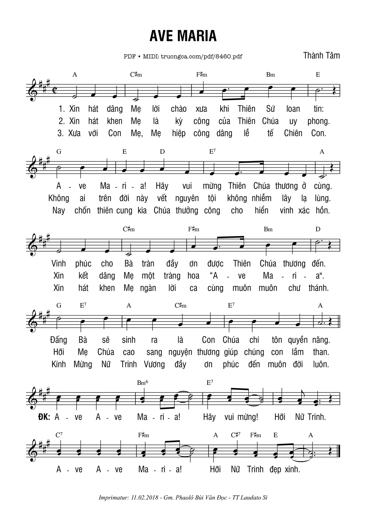 Thành Tâm Xin hát dâng Mẹ lời chào xưa khi Thiên Sứ loan tin Ave Maria [PDF] [Sheet] [Lời H.A] [Mp4/Midi]