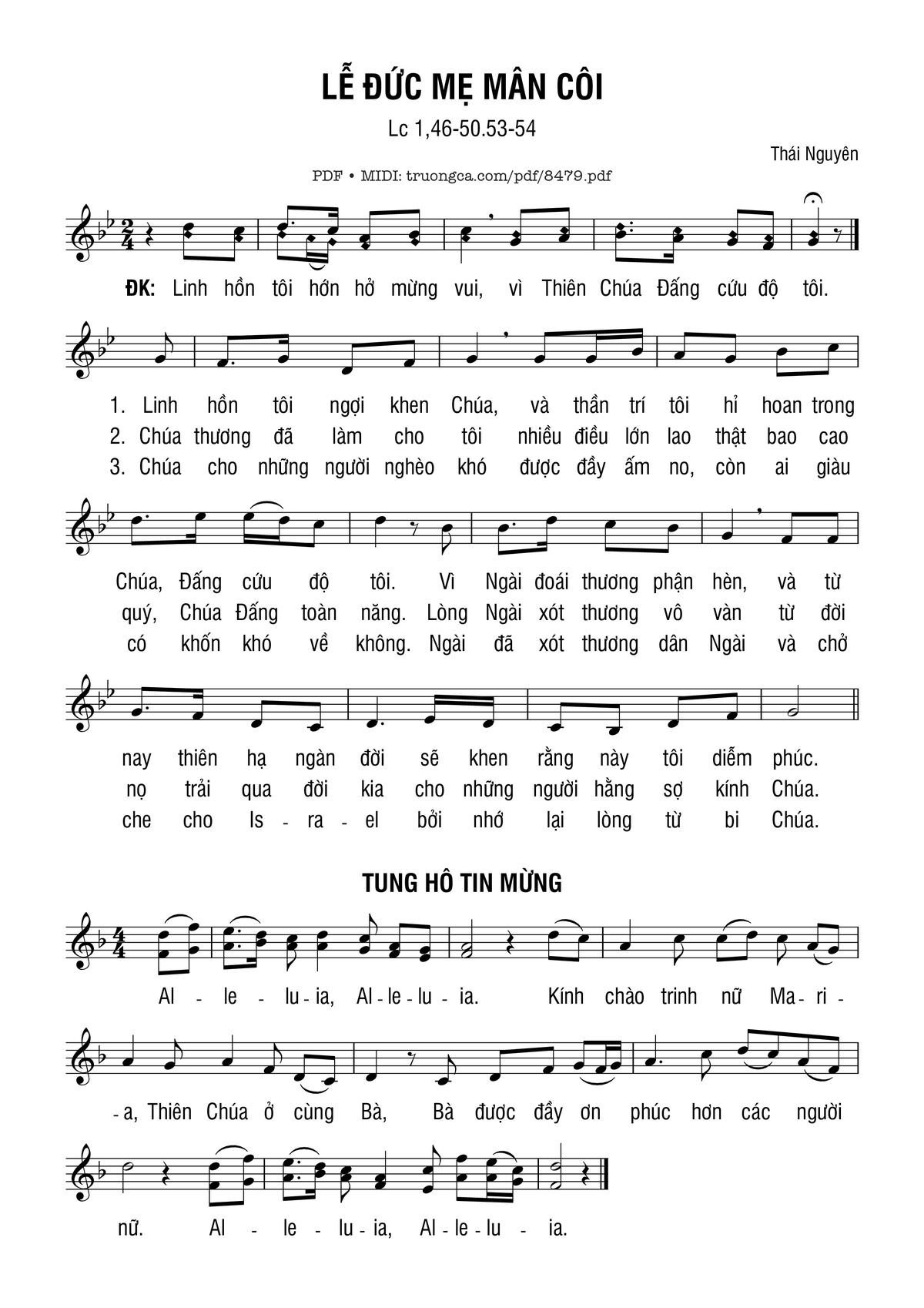 Thái Nguyên Linh hồn tôi ngợi khen Chúa và thần trí tôi hỉ hoan trong Chúa [PDF] [Sheet] [Lời H.A] [Mp4/Midi]