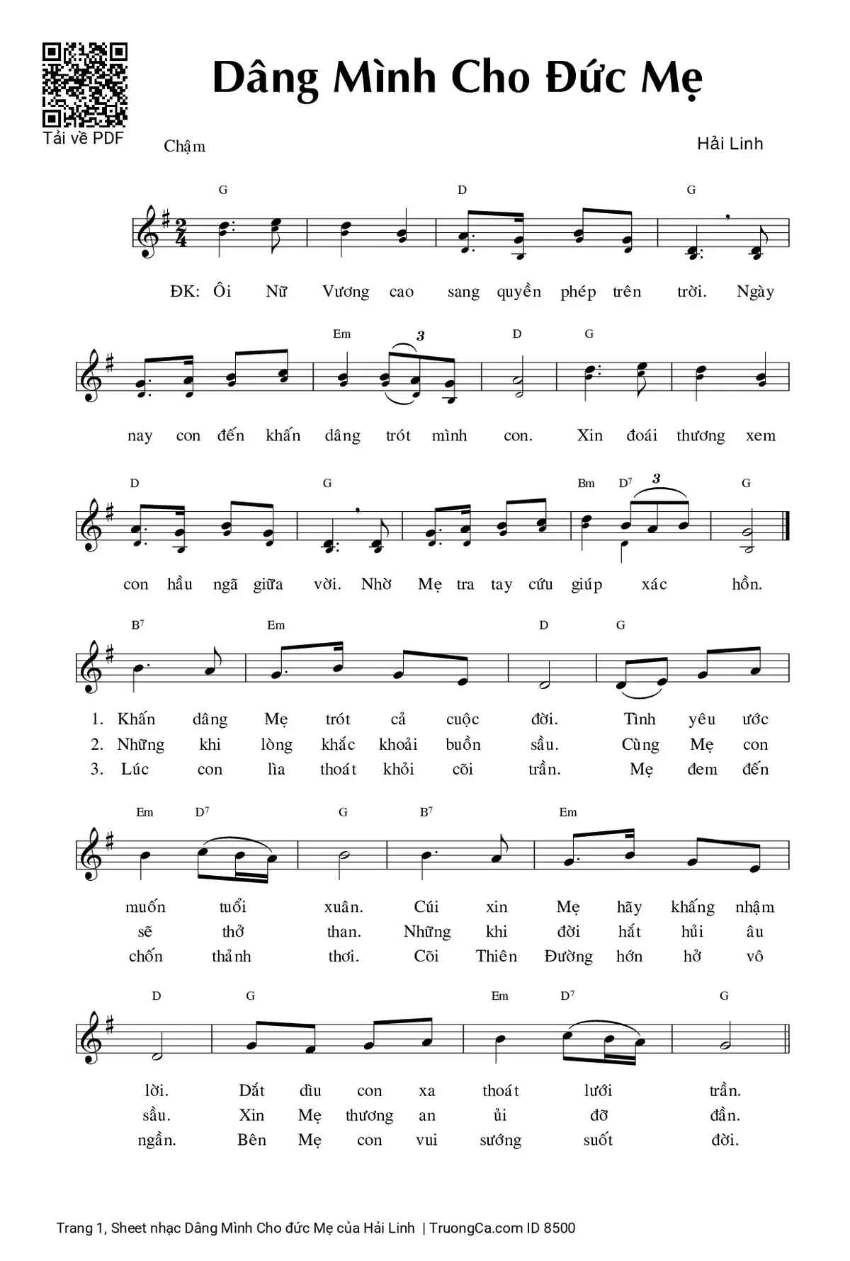 Hải Linh Ôi Nữ Vương cao sang quyền phép trên trời [PDF] [Sheet] [Lời H.A] [Mp4/Midi]