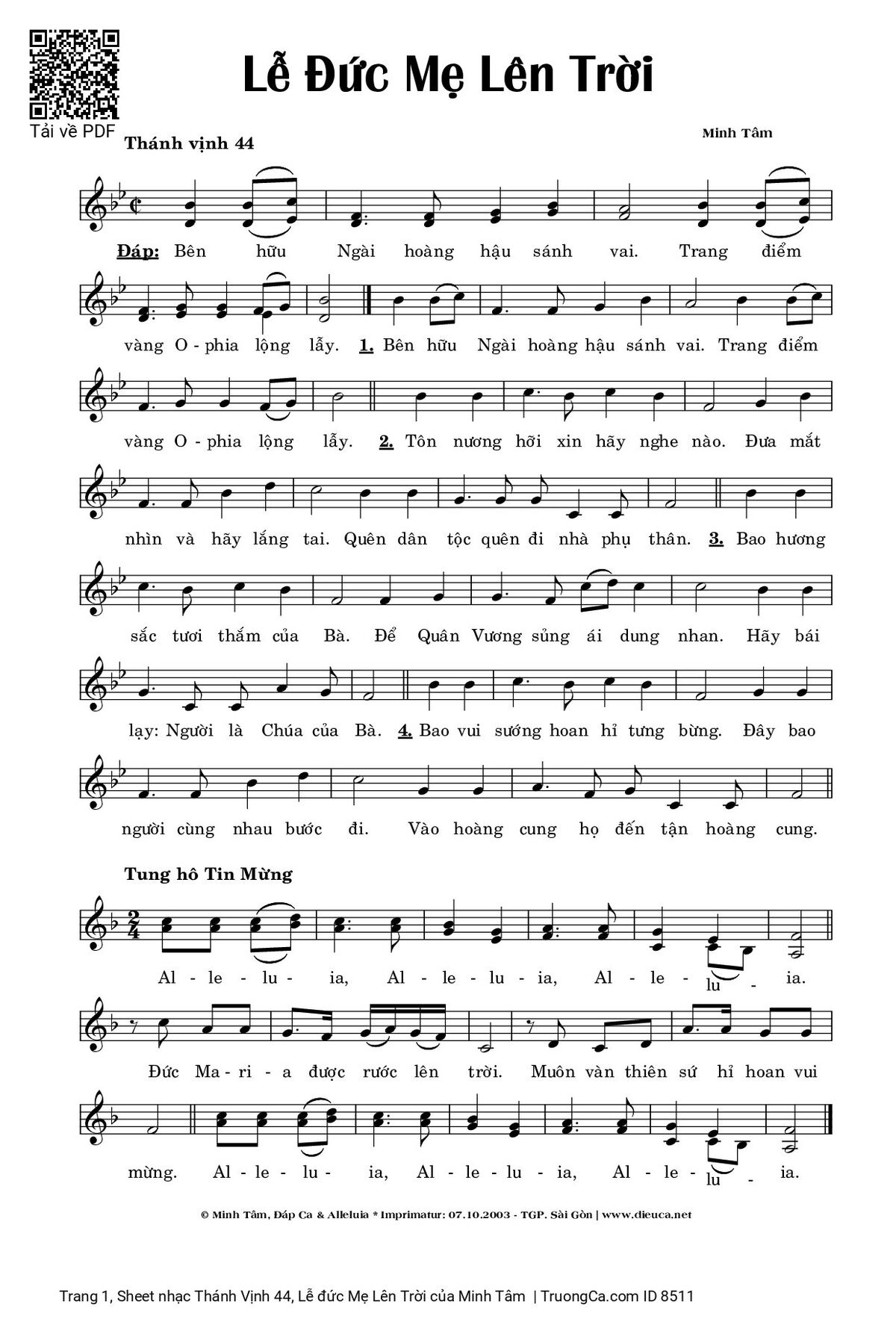 Các sheet PDF cùng tên Thánh Vịnh 44, Lễ đức Mẹ Lên Trời: