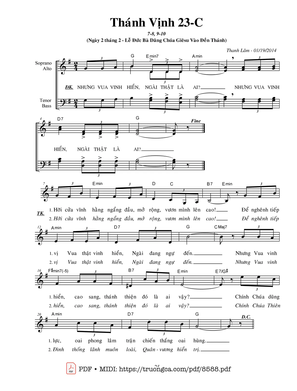 Thanh Lâm Nhưng Vua Vinh Hiển Ngài thật là ai Nhưng Vua Vinh Hiển [PDF] [Sheet] [Lời H.A] [Mp4/Midi]