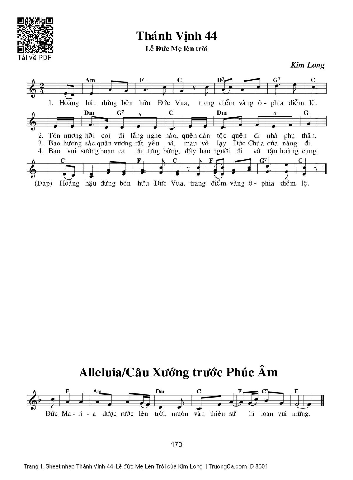 Các sheet PDF tương tự Thánh Vịnh 44, Lễ đức Mẹ Lên Trời: