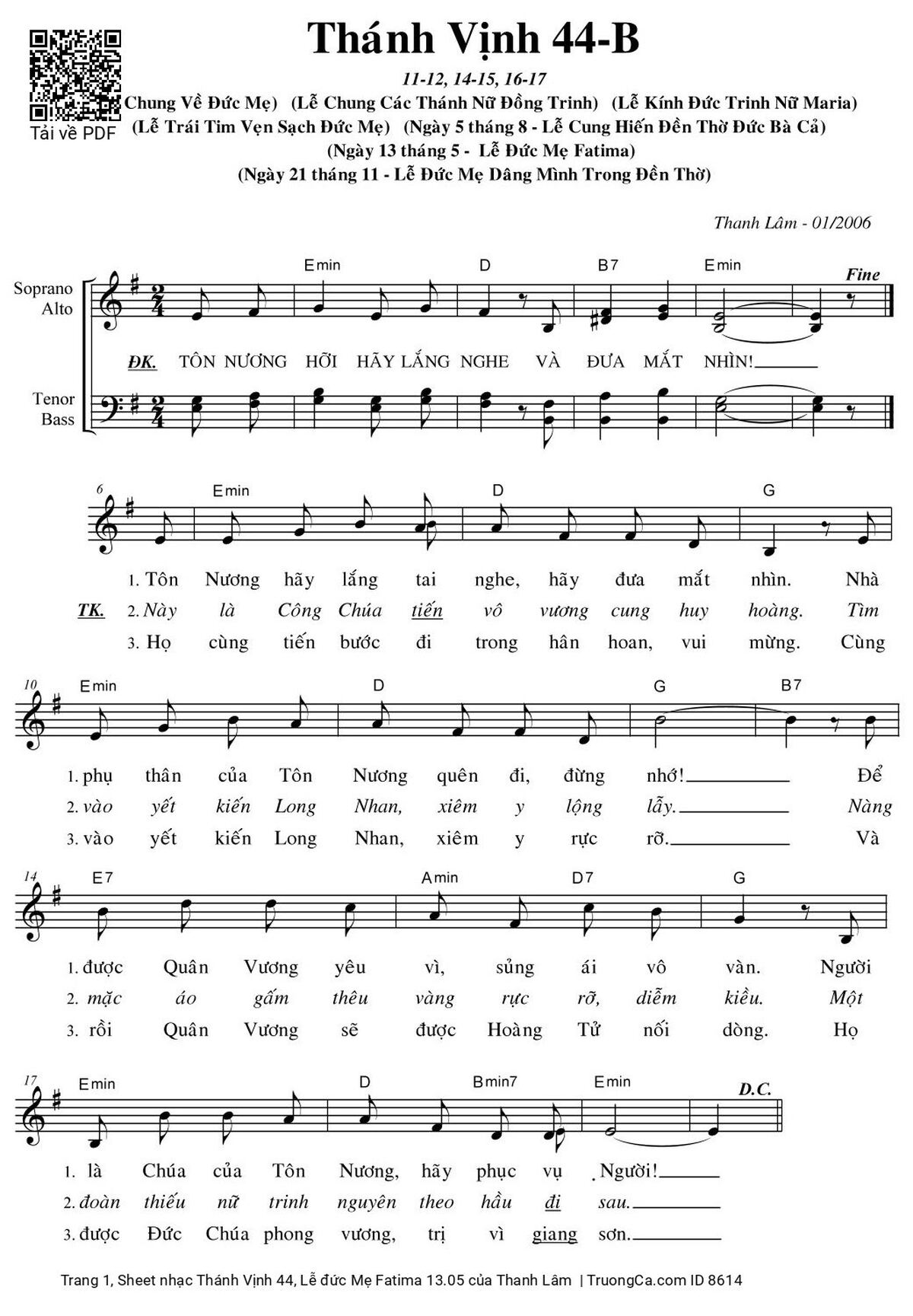 Thanh Lâm Tôn nương hỡi hãy lắng nghe và đưa mắt nhìn [PDF] [Sheet] [Lời H.A] [Mp4/Midi]