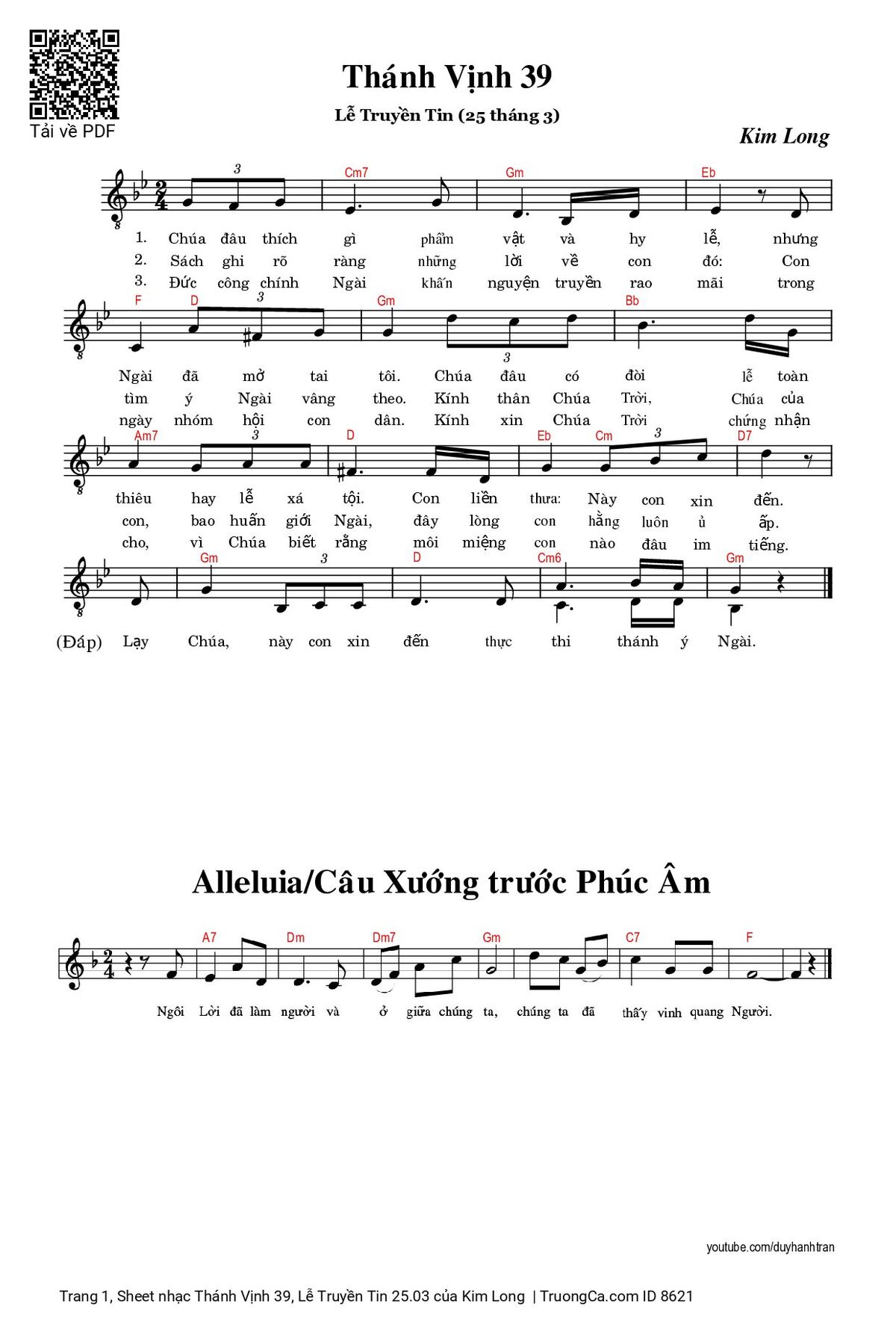 Thể loại 🌾 Nhạc Thánh Ca, 🌾 Thánh Vịnh - Đáp Ca, 🌾 Thánh ca Imprimatur, 🌾 Thánh Vịnh 39
