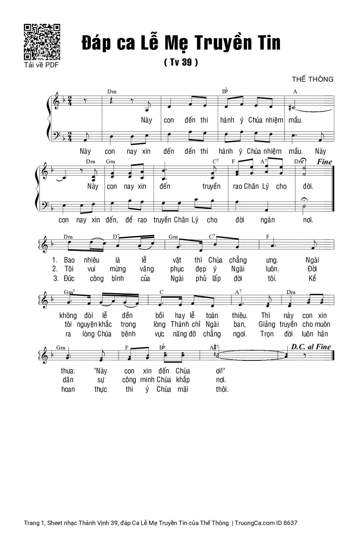 Các sheet PDF tương tự Thánh Vịnh 39, đáp Ca Lễ Mẹ Truyền Tin: