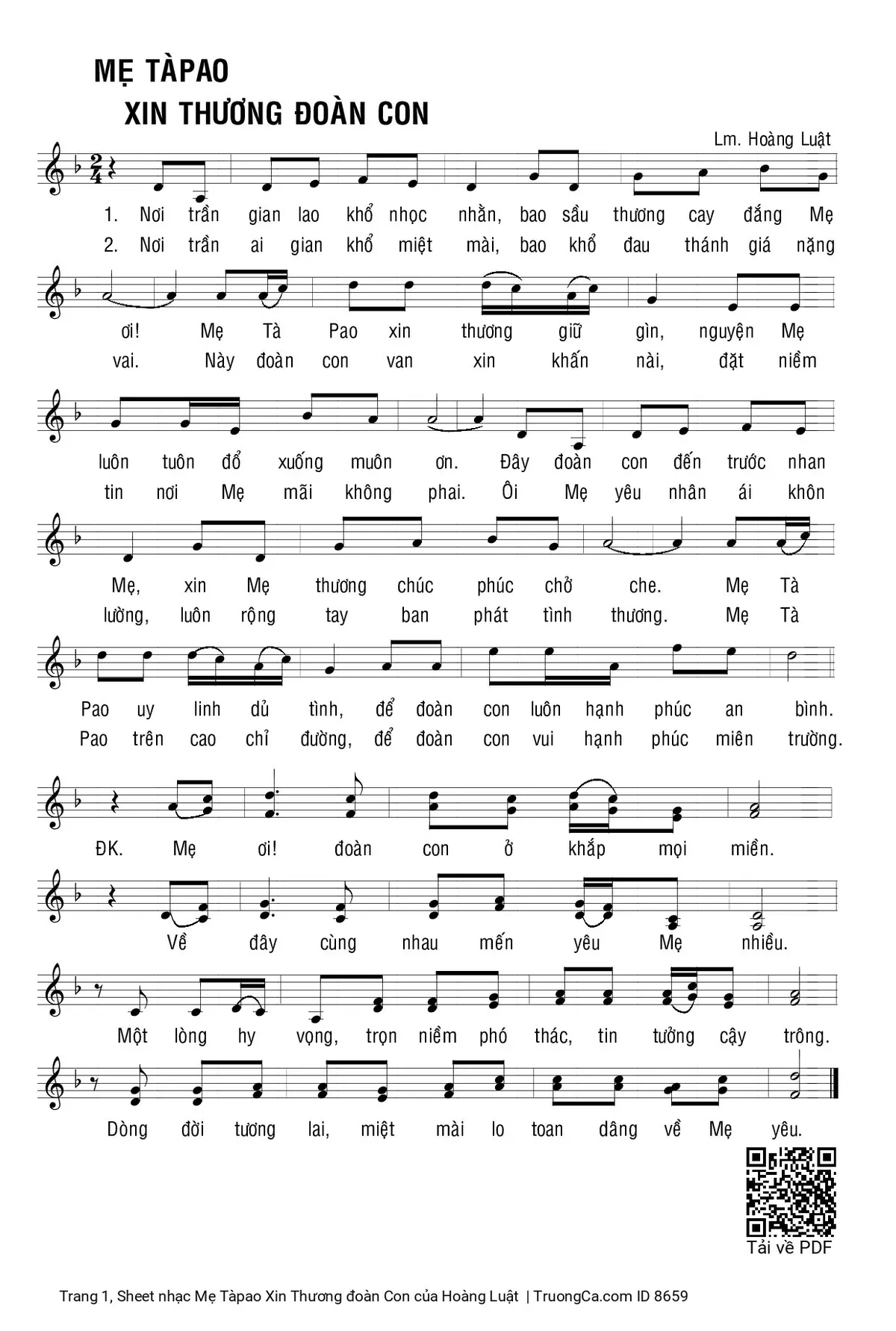 Các sheet PDF tương tự Mẹ Tàpao Xin Thương đoàn Con: