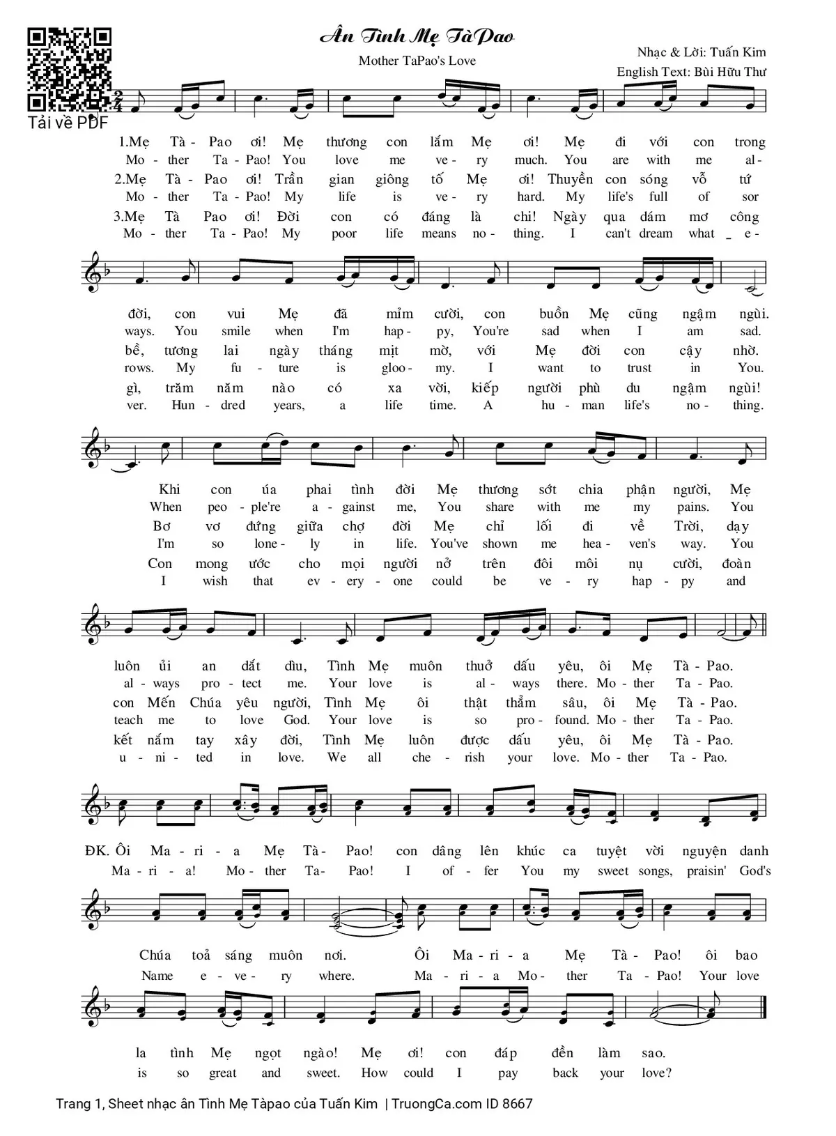 Tuấn Kim Mẹ TàPao ơi Mẹ thương con lắm Mẹ ơi Mẹ đi với con trong đời [PDF] [Sheet] [Lời H.A] [Mp4/Midi]
