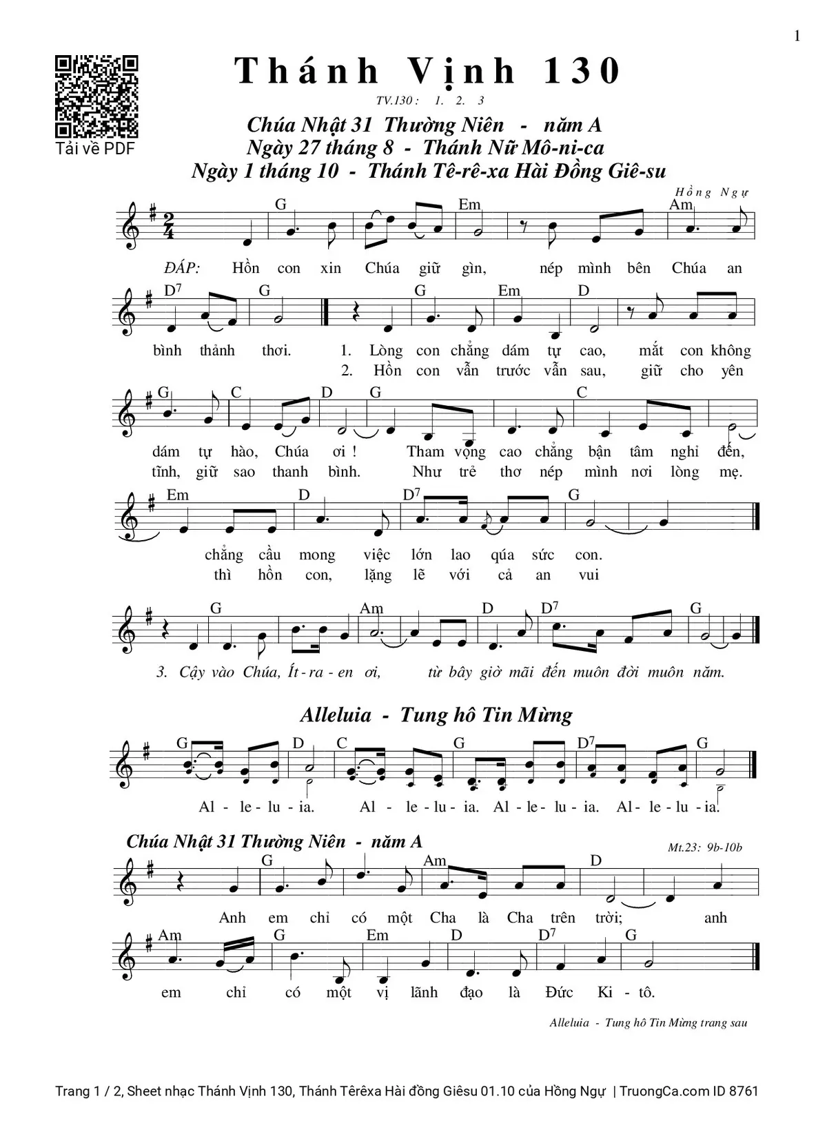 Các sheet PDF tương tự Thánh Vịnh 130, Thánh Têrêxa Hài đồng Giêsu 01.10: