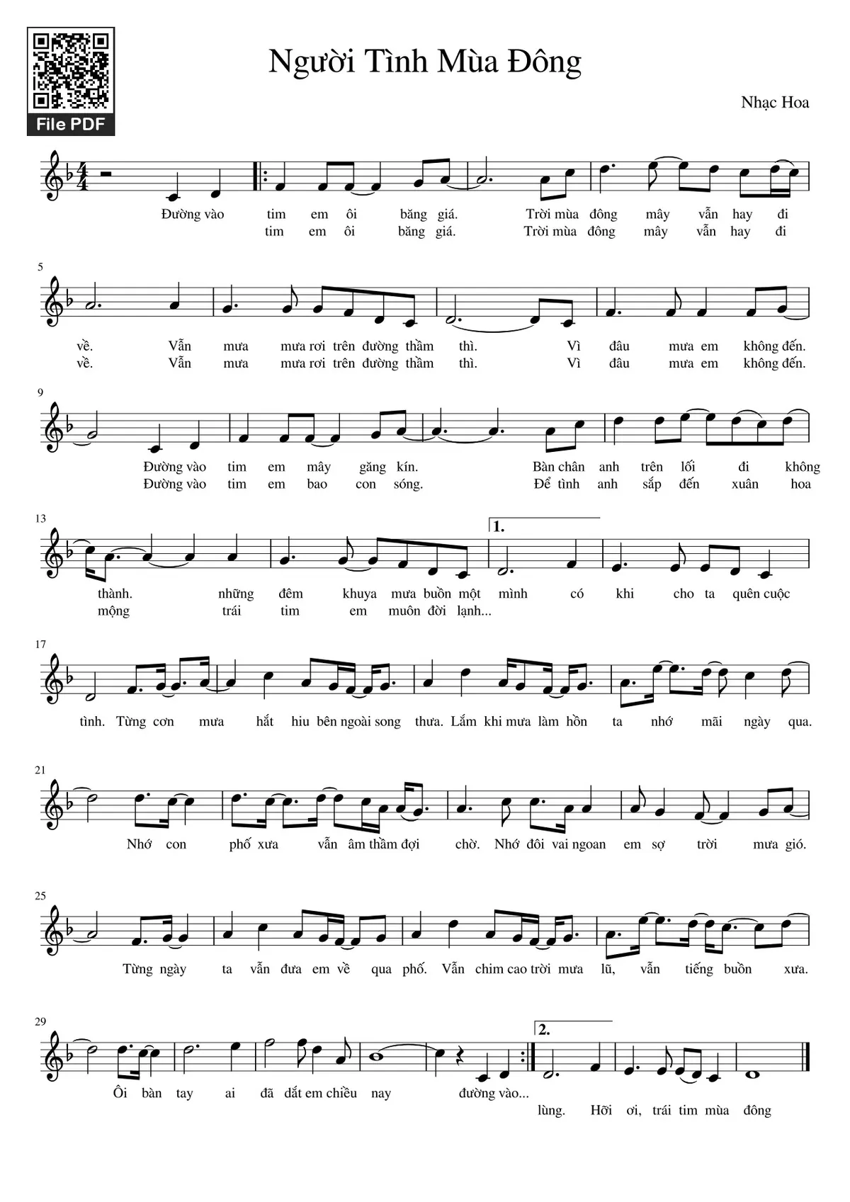 Các sheet PDF tương tự Người Tình Mùa Đông: