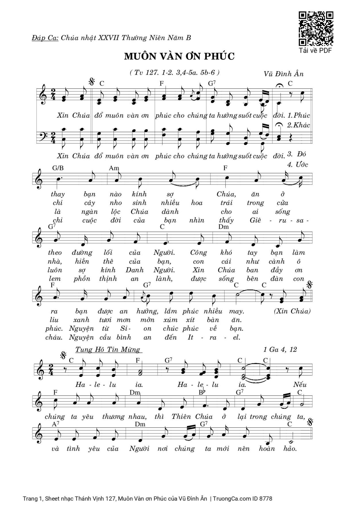 Các sheet PDF tương tự Thánh Vịnh 127, Muôn Vàn ơn Phúc: