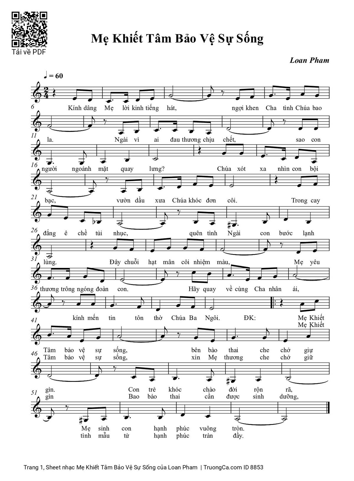Các sheet PDF tương tự Mẹ Khiết Tâm Bảo Vệ Sự Sống: