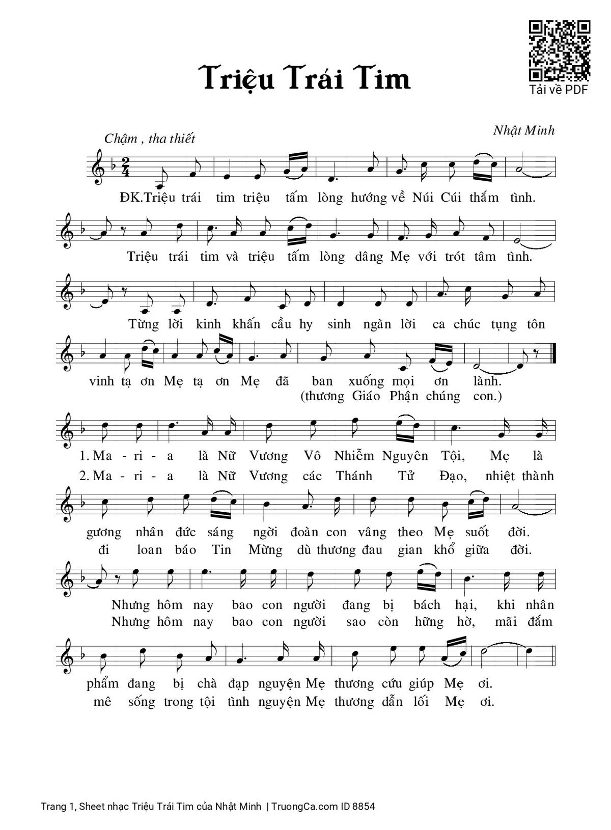 Điệp khúc: Triệu trái tim triệu tấm lòng hướng về Núi Cúi thắm tình. Triệu trái tim và triệu tấm lòng dâng Mẹ với trót tâm tình. Từng lời kinh khấn cầu hy sinh ngàn lời ca chúc tụng tôn vinh tạ ơn Mẹ tạ ơn Mẹ đã ban xuống mọi ơn lành.