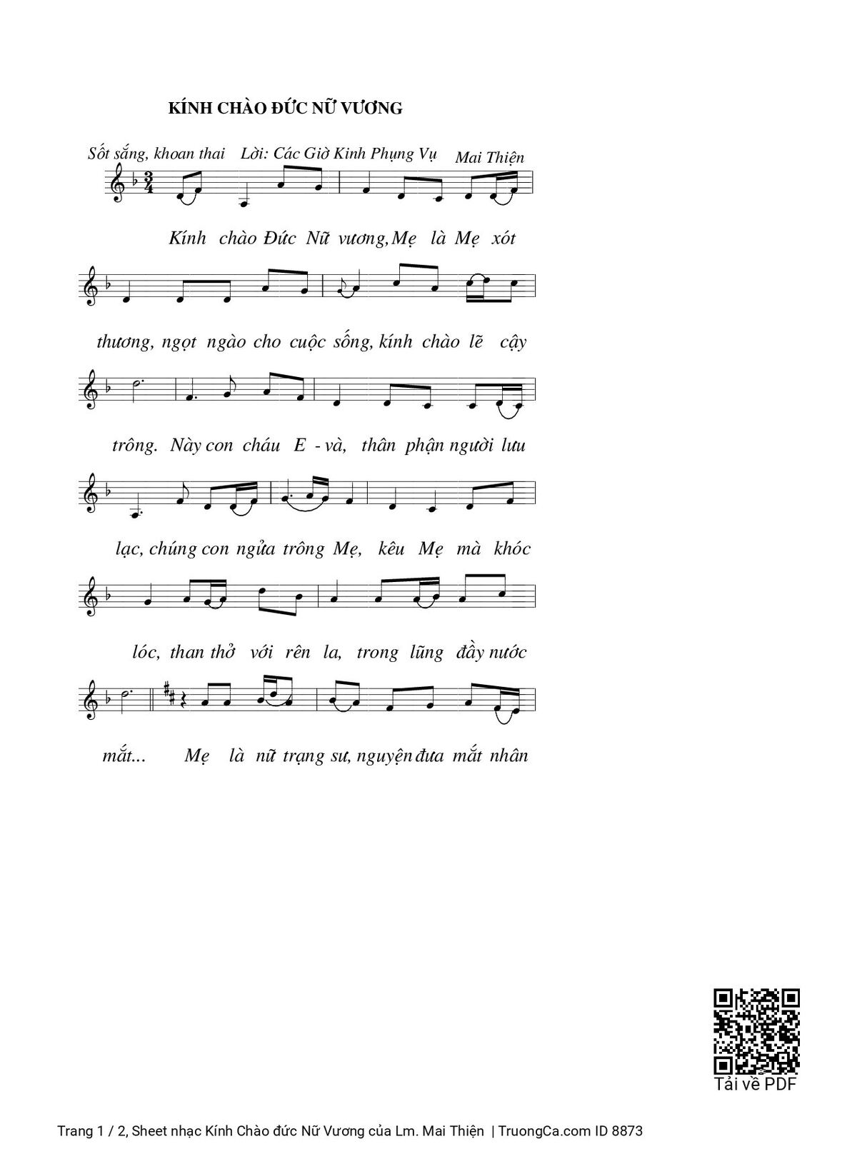 Các sheet PDF tương tự Kính Chào đức Nữ Vương: